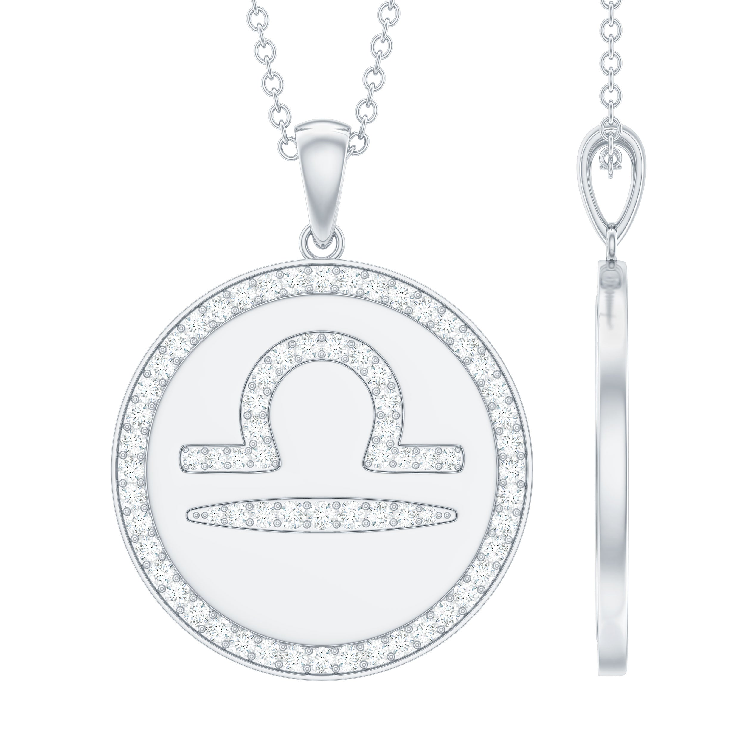 Simple Moissanite and Disc Libra Zodiac Pendant