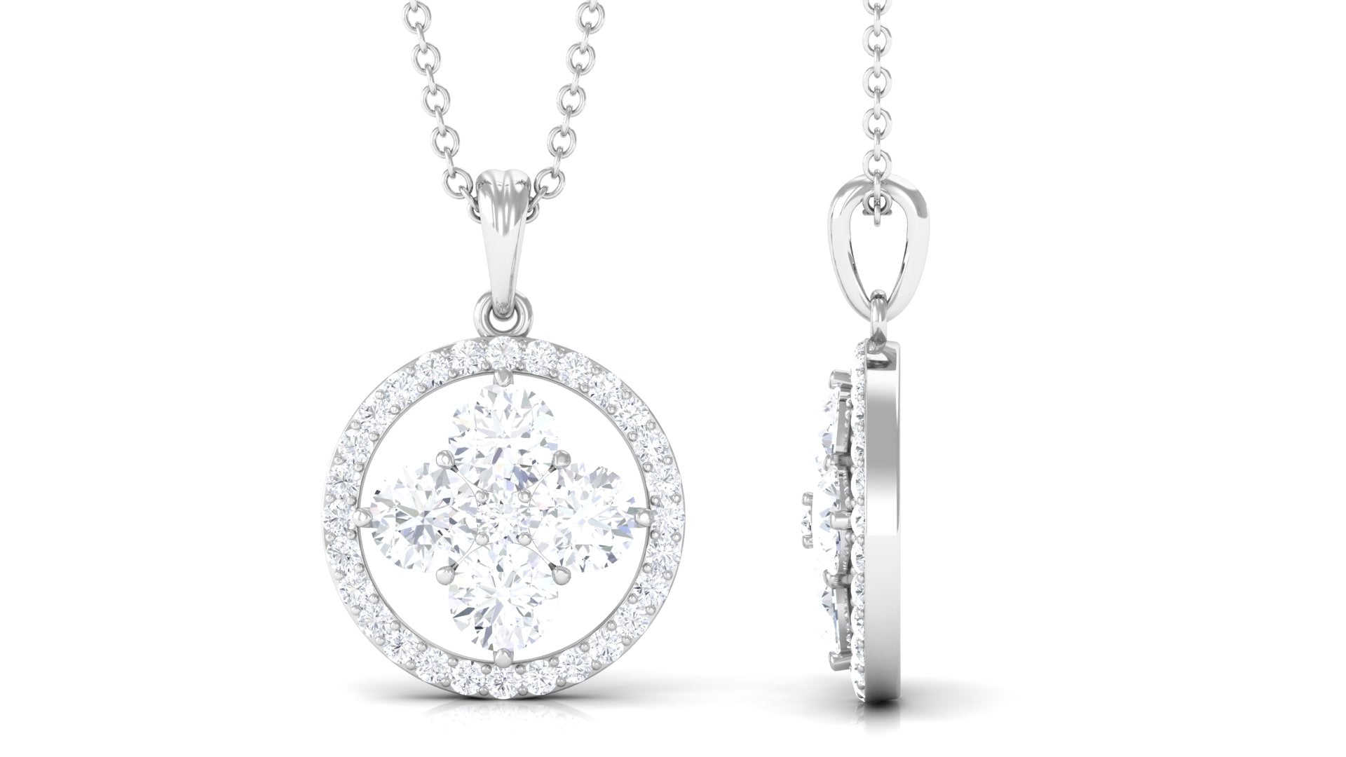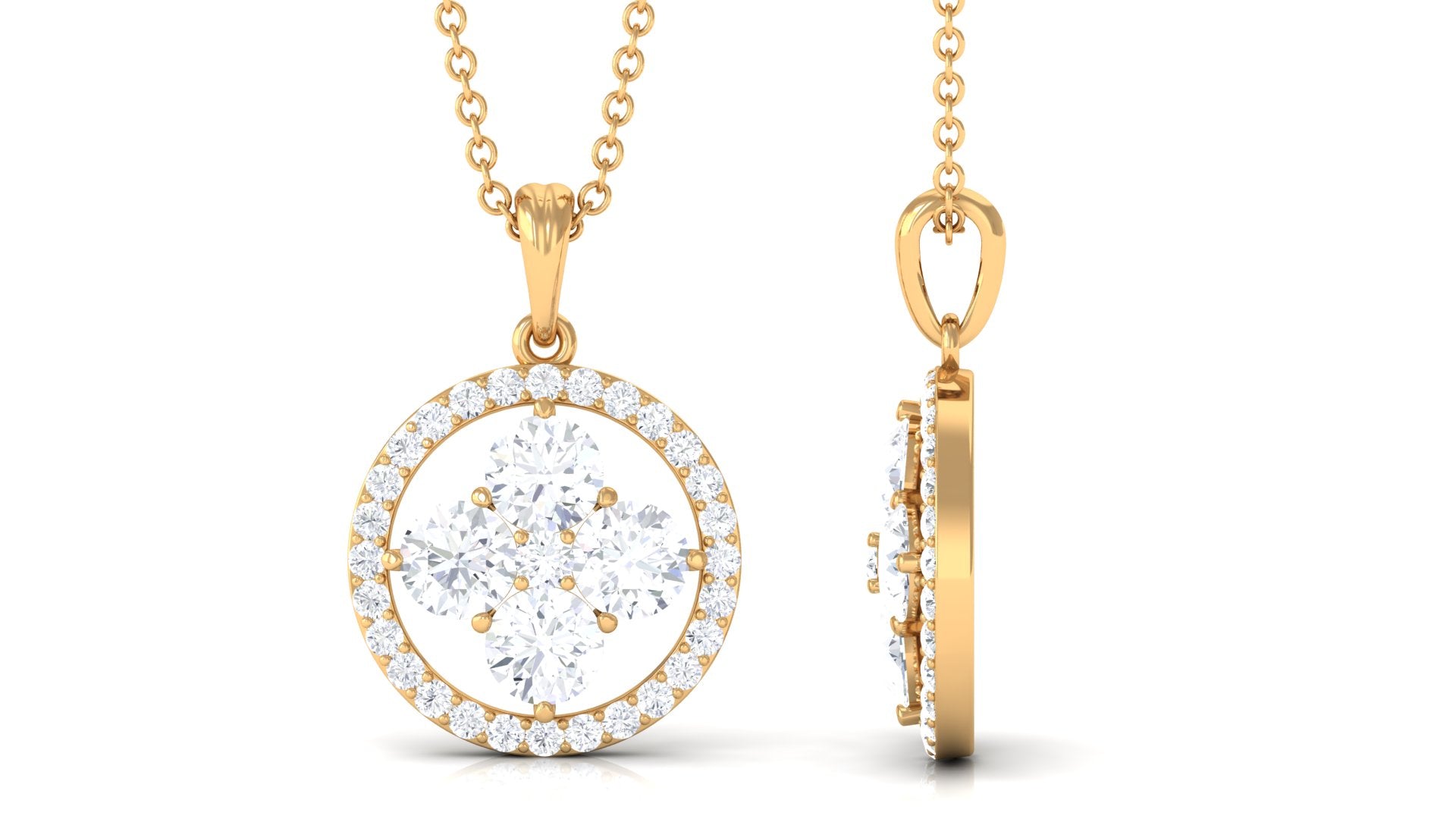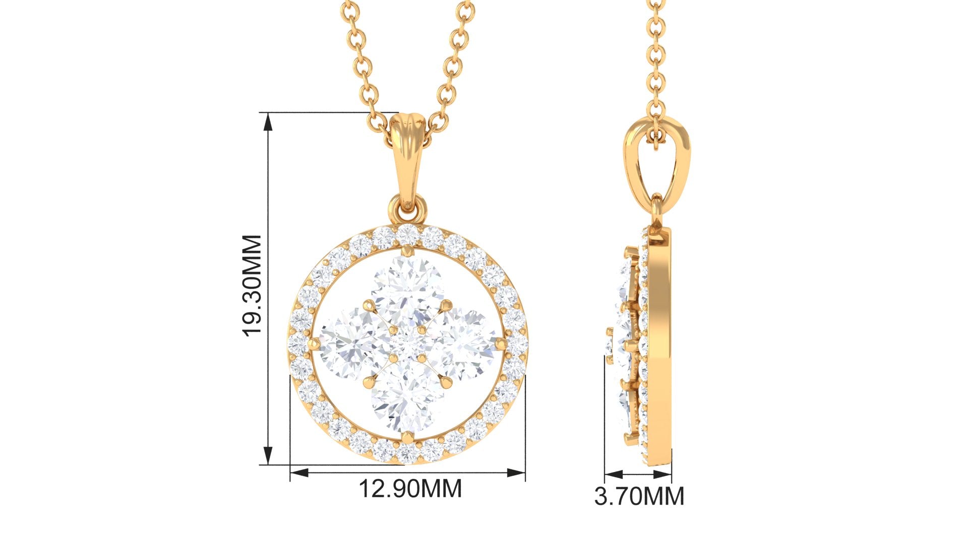 This stunning Moissanite Flower Pendant is embellished with Round Shape Moissanite assembled in a Floral Shape while more dainty Round Moissanite studded on the circular frame. This Moissanite Pendant is crafted with Hallmarked Metal and could easily match your most stylish outfits for you to look breathtakingly stunning, making it a perfect birthday present.