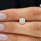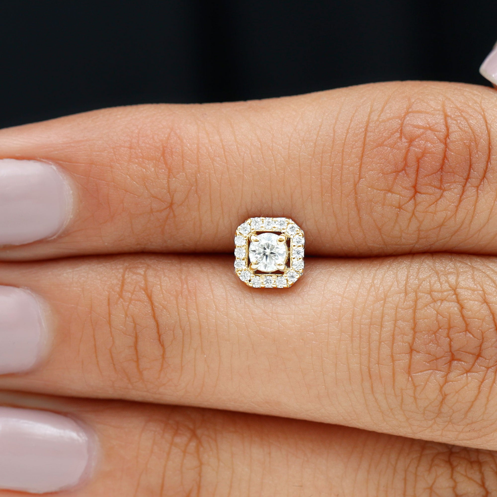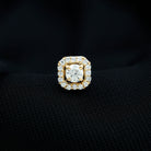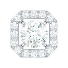- Featuring a Round Diamond in the center while dainty round diamonds studded as a halo on an octagon shaped motif.
