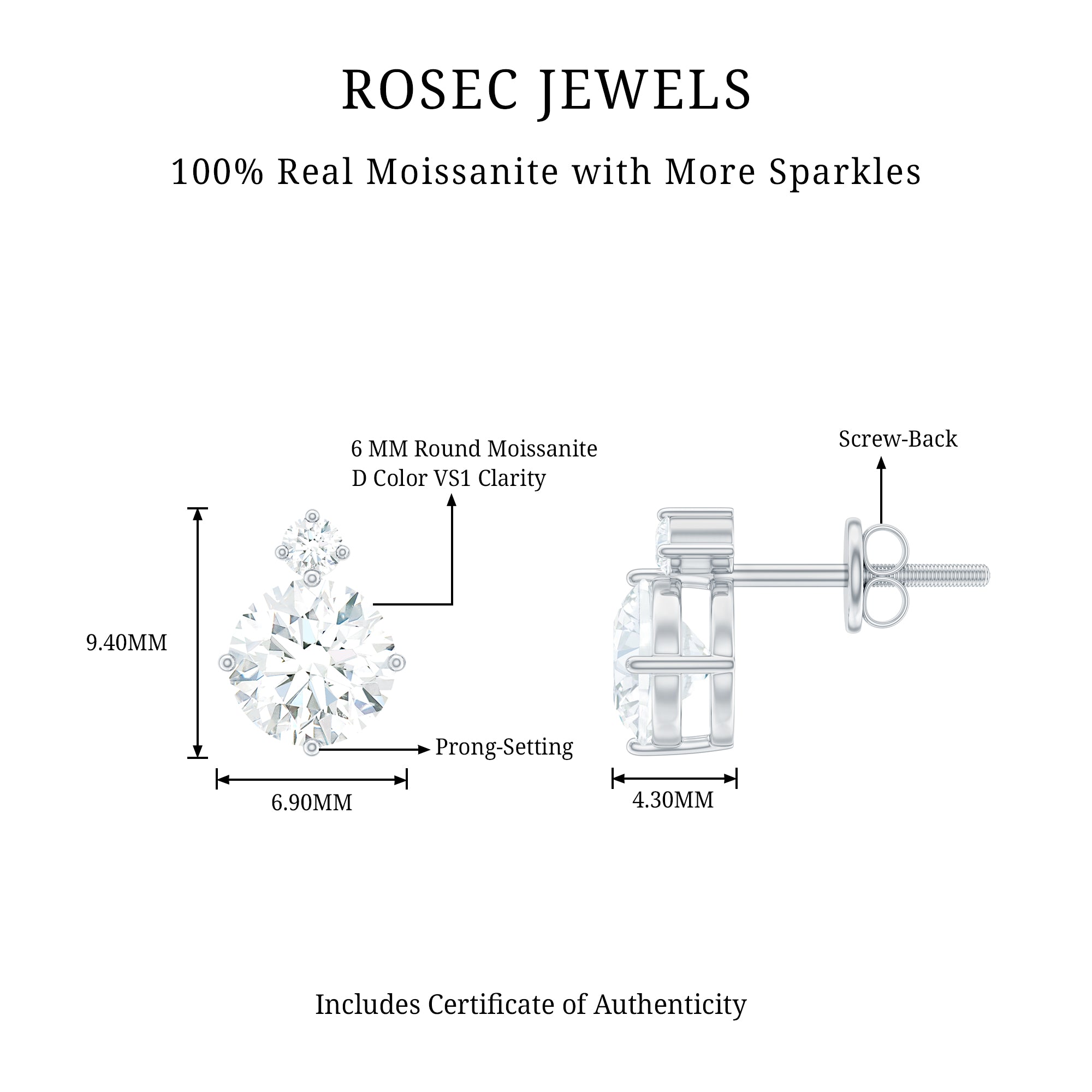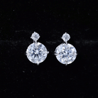 Elevate your style with these solitaire stud earrings, featuring round moissanite complemented by a delicate top round moissanite, enhancing the sparkle and brilliance. The moissanite is securely set in a 4-prong setting, adding to its enhanced beauty. These elegant solitaire studs are finished with convenient screw back posts, completing their utterly sophisticated design.