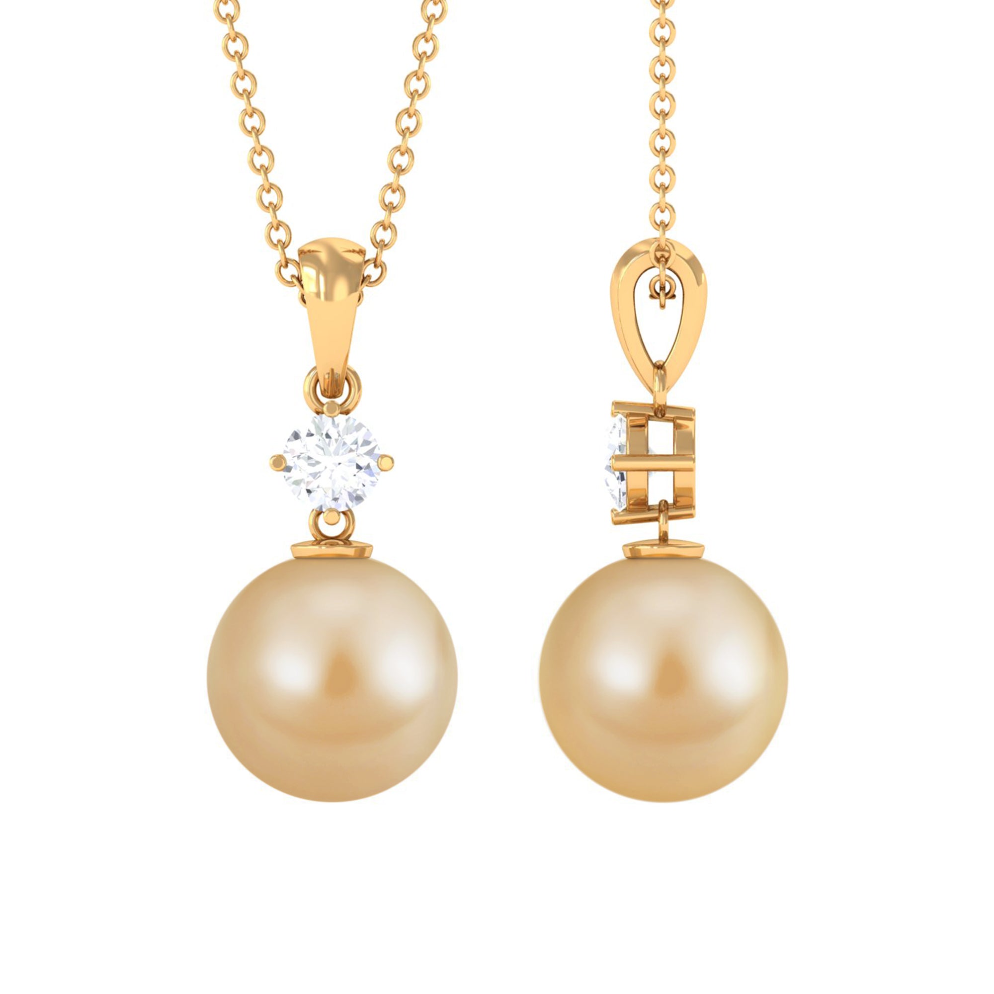 Simple Round South Sea Pearl and Moissanite Drop Pendant