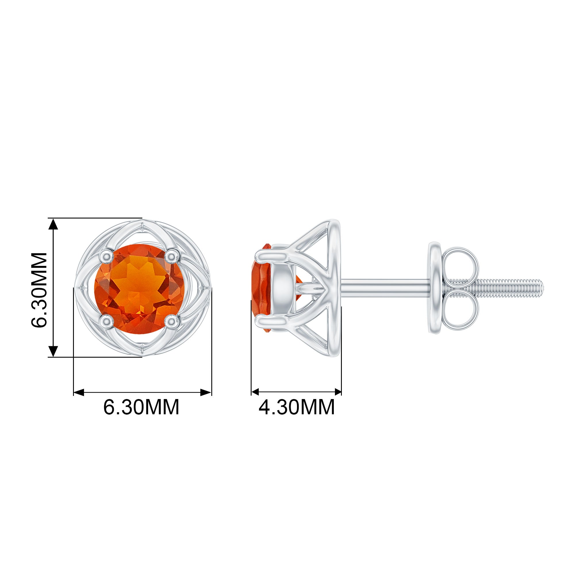 Behold this enchanting jewelry piece, specially curated for your beloved. These stunning stud earrings feature a mesmerizing Round Cut Fire Opal, expertly placed in a secure Prong Setting with a Screw Back find. The elegance of the center stone is further enhanced by a delightful Floral encasing, adding a touch of sophistication and charm to this adorable pair of earrings. A perfect gift to captivate the heart of your loved one.