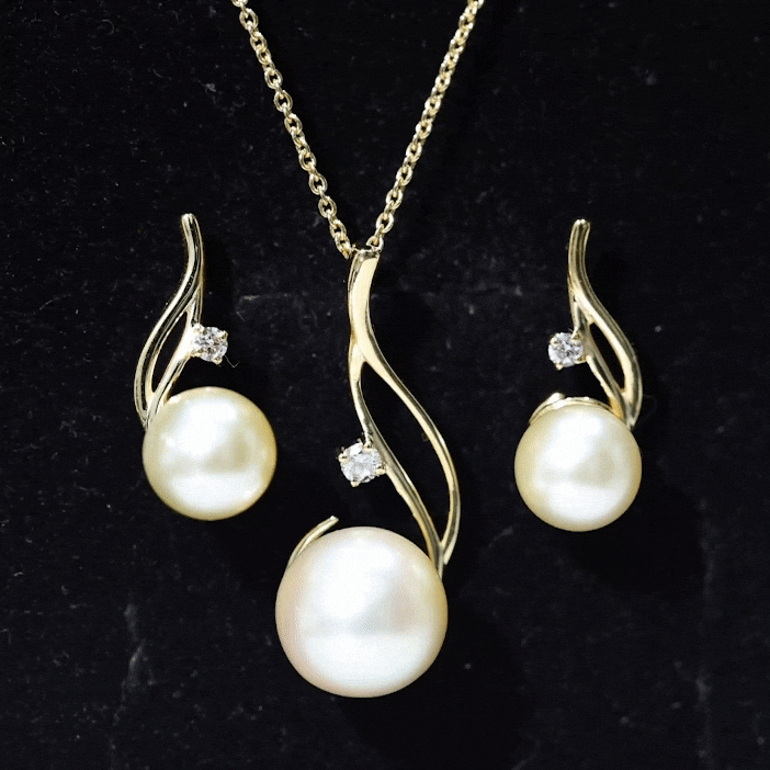 Simple South Sea Pearl Leaf Jewelry Set with Diamond