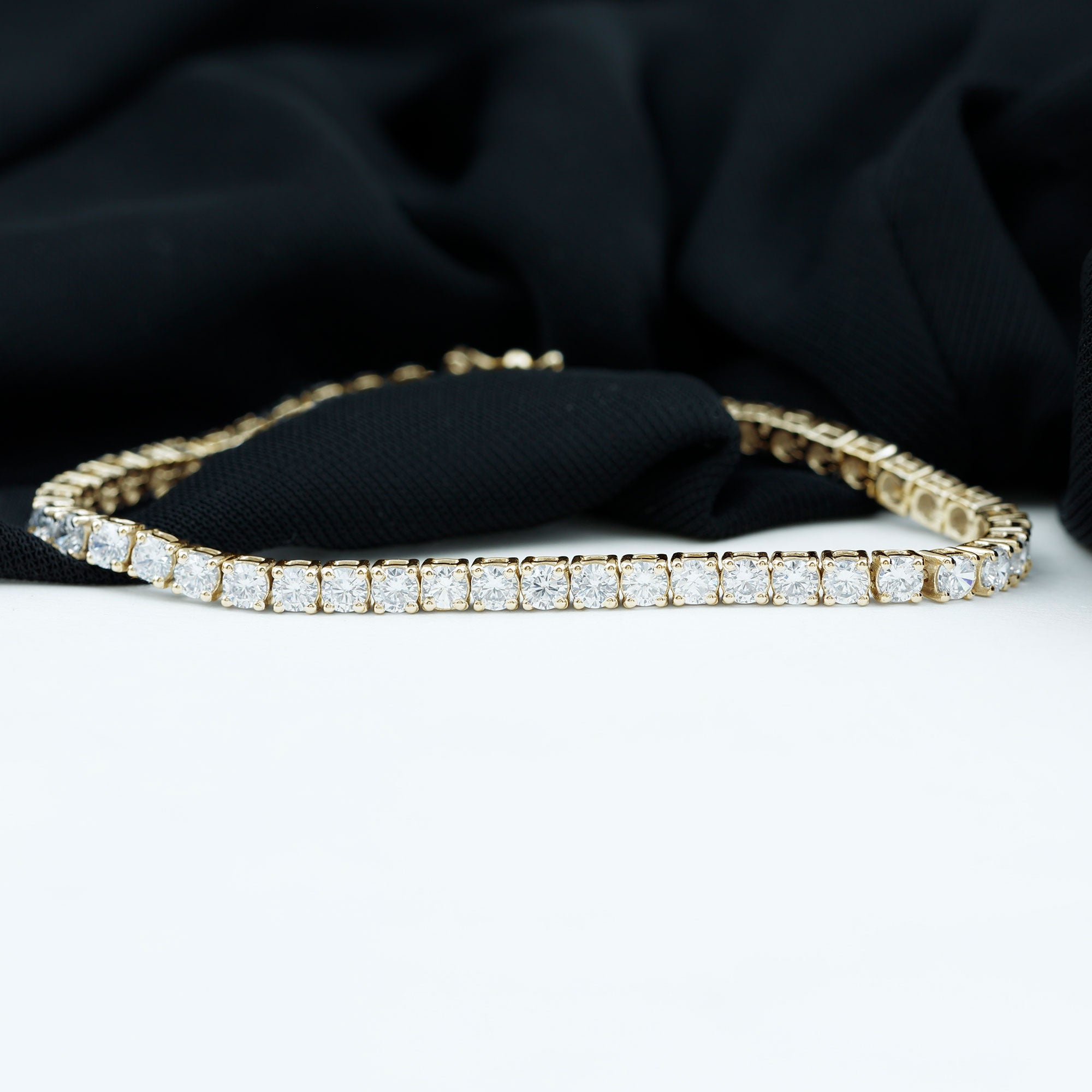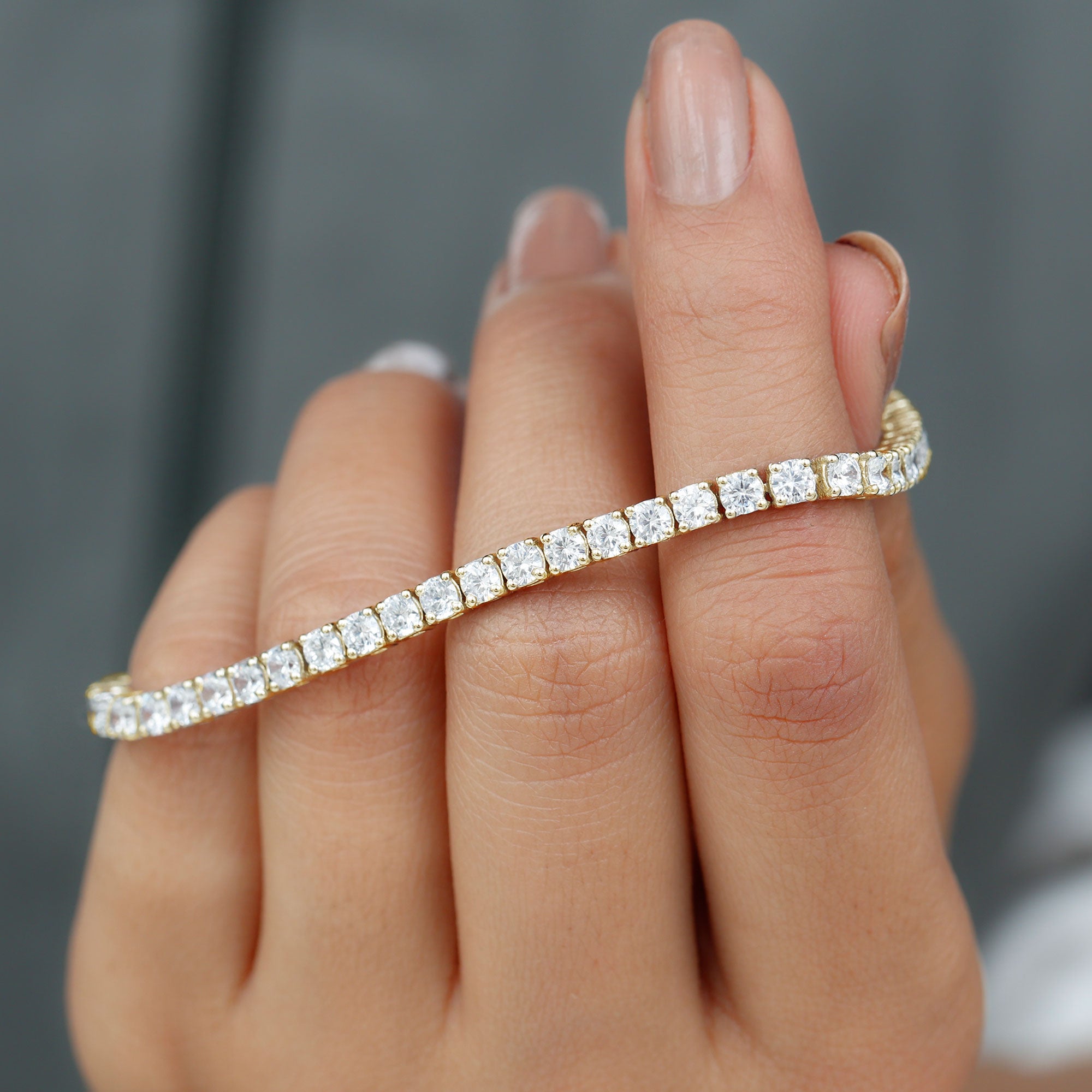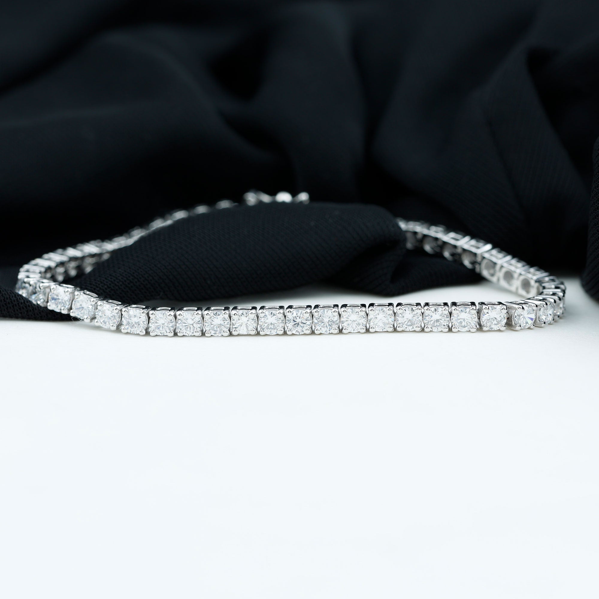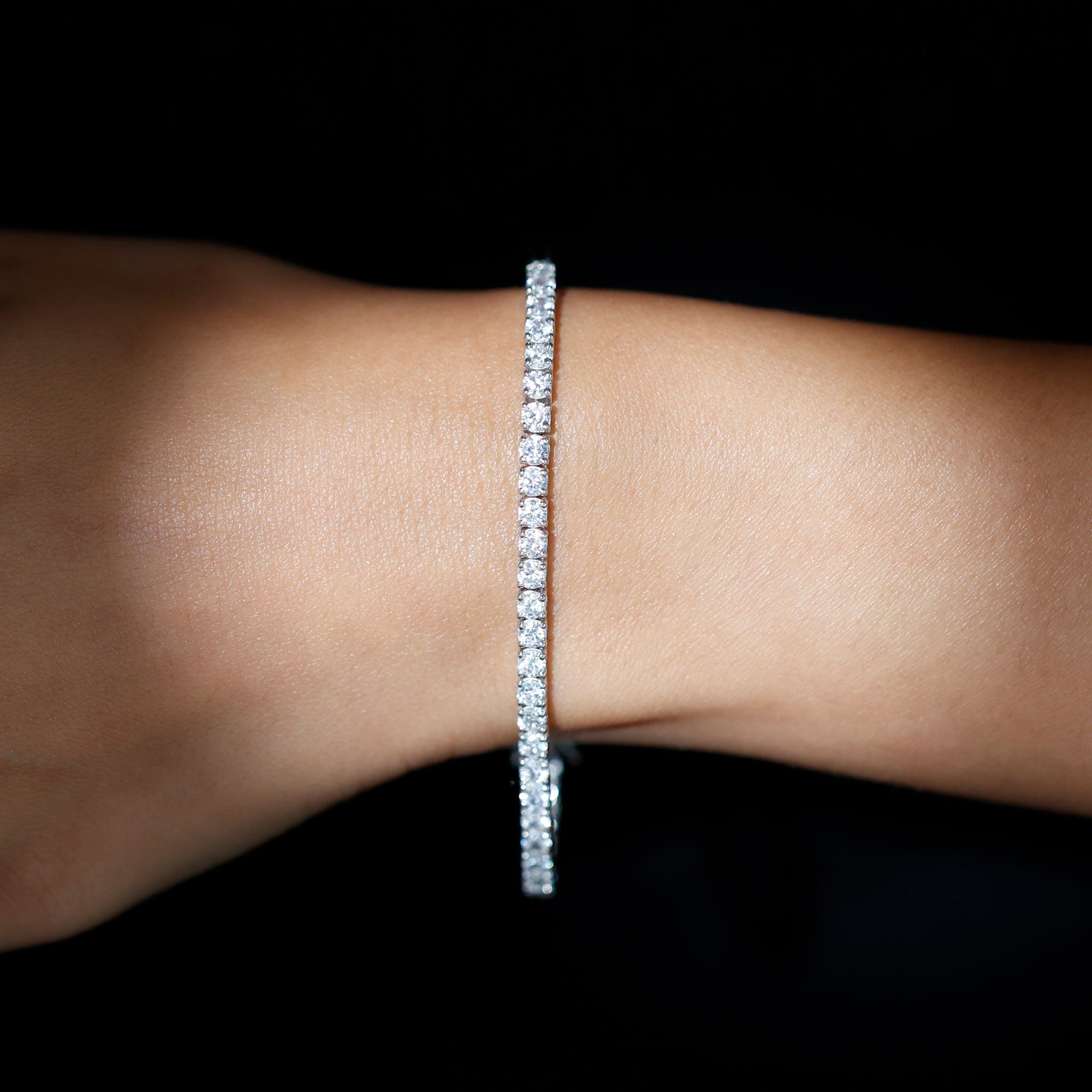 Show your love to your loved one with this Dazzling Tennis Bracelet embellished with Round Shape Zircons set in a Prong Setting, this beautiful Tennis Bracelet is available in various metal options.
