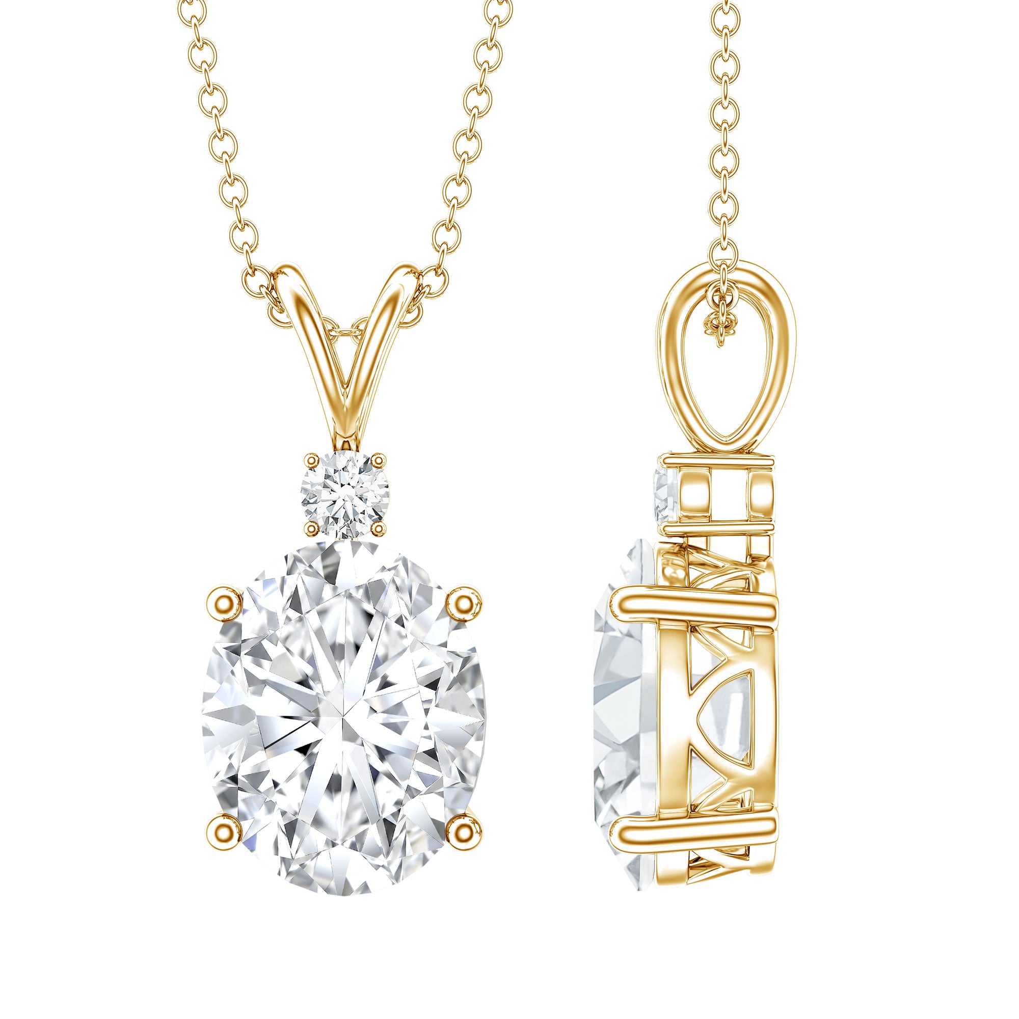 Add a touch of elegance to your ensemble with this Simple Pendant Necklace. Featuring an oval and round cut Zircon, this necklace shines bright. The rabbit ear bail adds a unique and stylish element. Elevate your look with this beautiful and versatile pendant necklace.