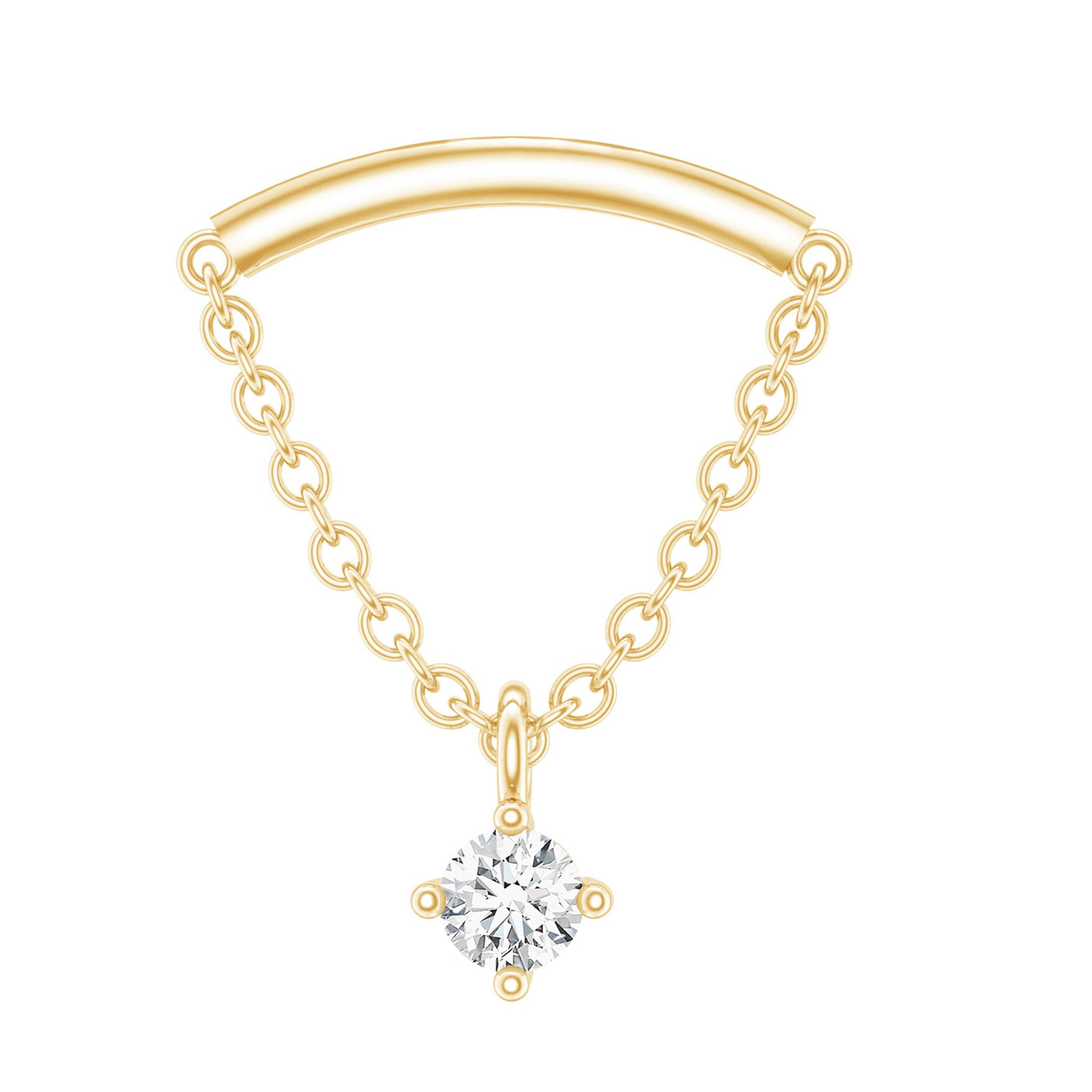 Here is something that will totally make you fall in love with piercing jewelry! Check out this Diamond Helix Earring that will help you shine and stand out. It features a curved bar on top that fits snugly into the fold of your ear, with a metal chain dangling a delicate Round Diamond held in place by prong setting, giving it a lovely dangly vibe. To take your look up a notch, mix this Diamond Chain Earring with your other piercing jewelry to nail your ear stack game. Flaunt your uniqueness and create a minimalist yet chic fashion statement with this Hidden Helix Earring, guaranteed to catch eyes with its dazzling sparkle or be admired for its distinct beauty. The striking simplicity of this classic earring is free from unnecessary frills, making it a sophisticated pick for any jewelry enthusiast who wants to carry themselves with elegance. Gift this Minimalist Dangle Earring to your daughter, sister, wife, or mom, and watch her face light up with joy.