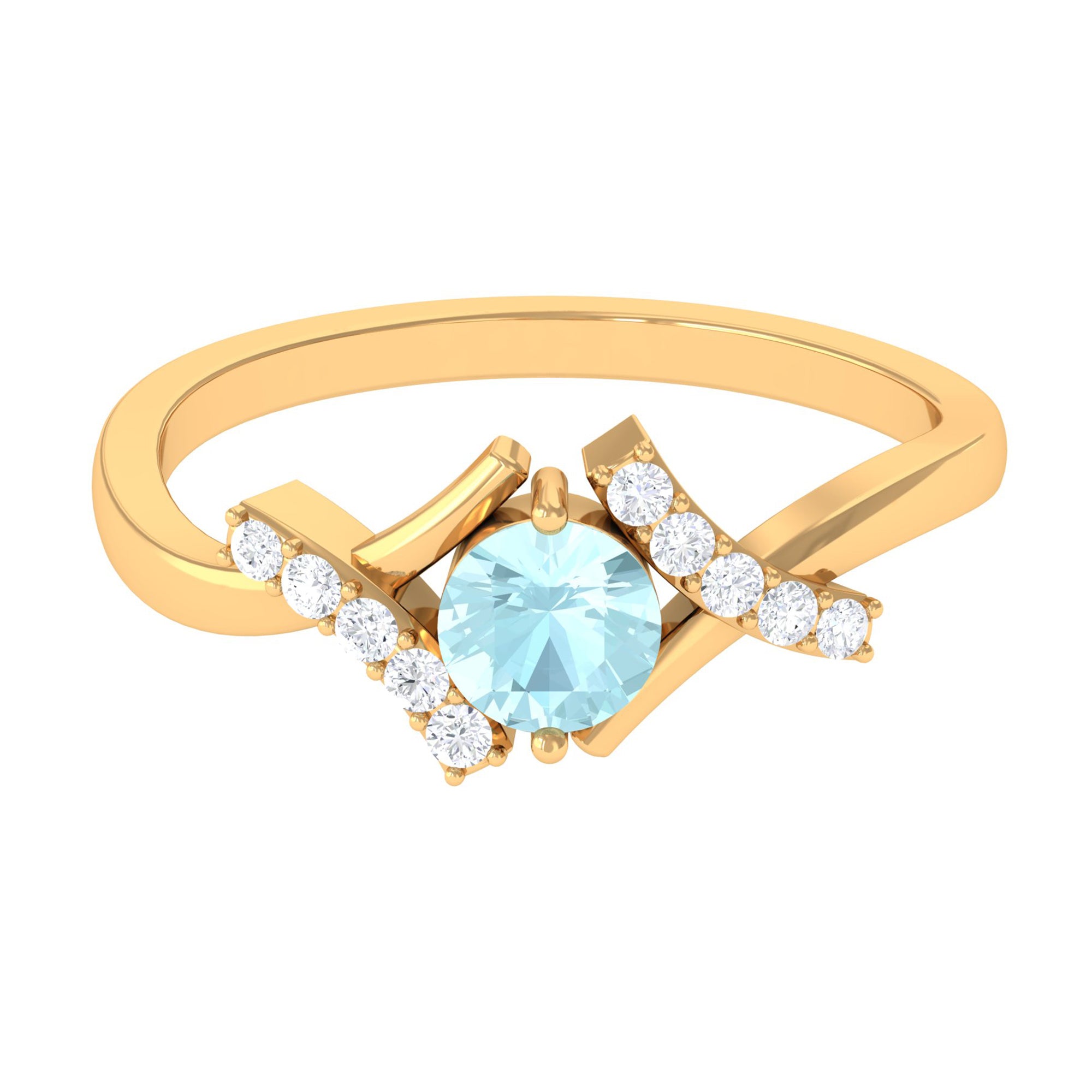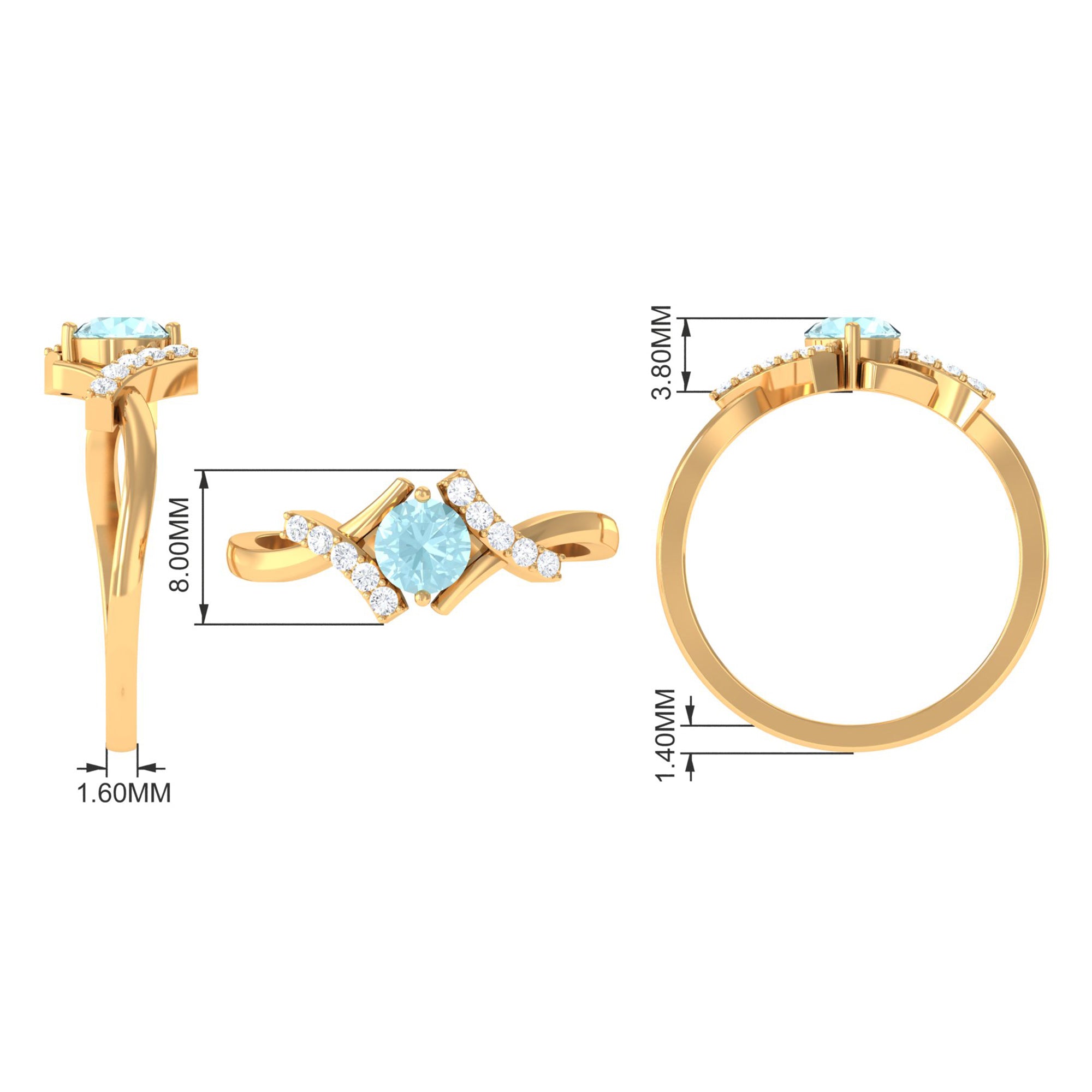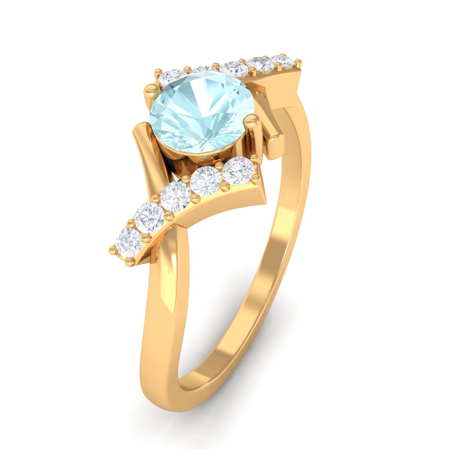 This delicate-styled Promise Ring is a perfect way to express your commitment to lasting love for someone closer to your heart. A Round Shape Sky Blue Topaz is artfully set in a Prong Setting to enhance the look and embellished with Diamond stones accent. This Sky Blue Topaz Ring is crafted in Solid Gold Metal with shimmering Diamond.