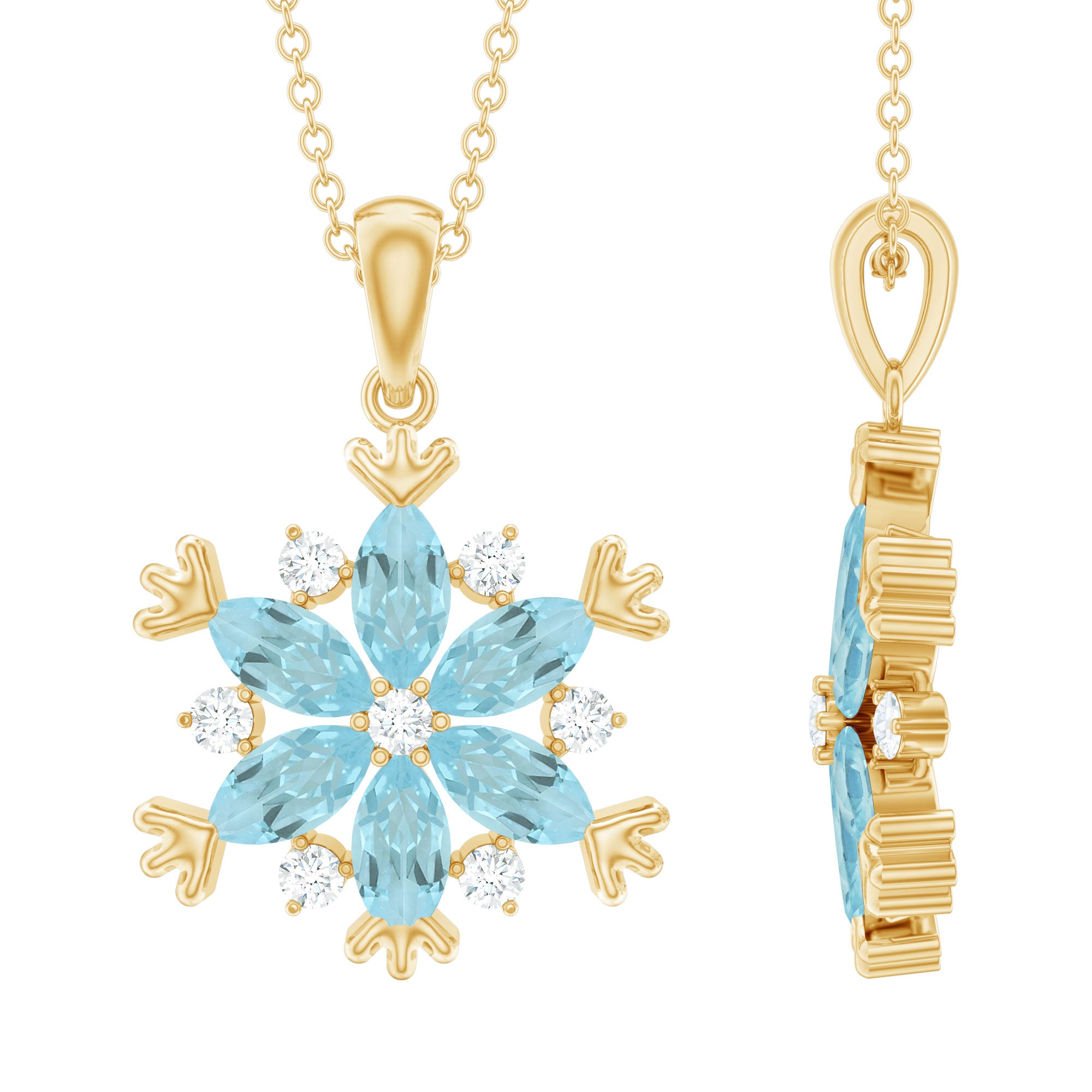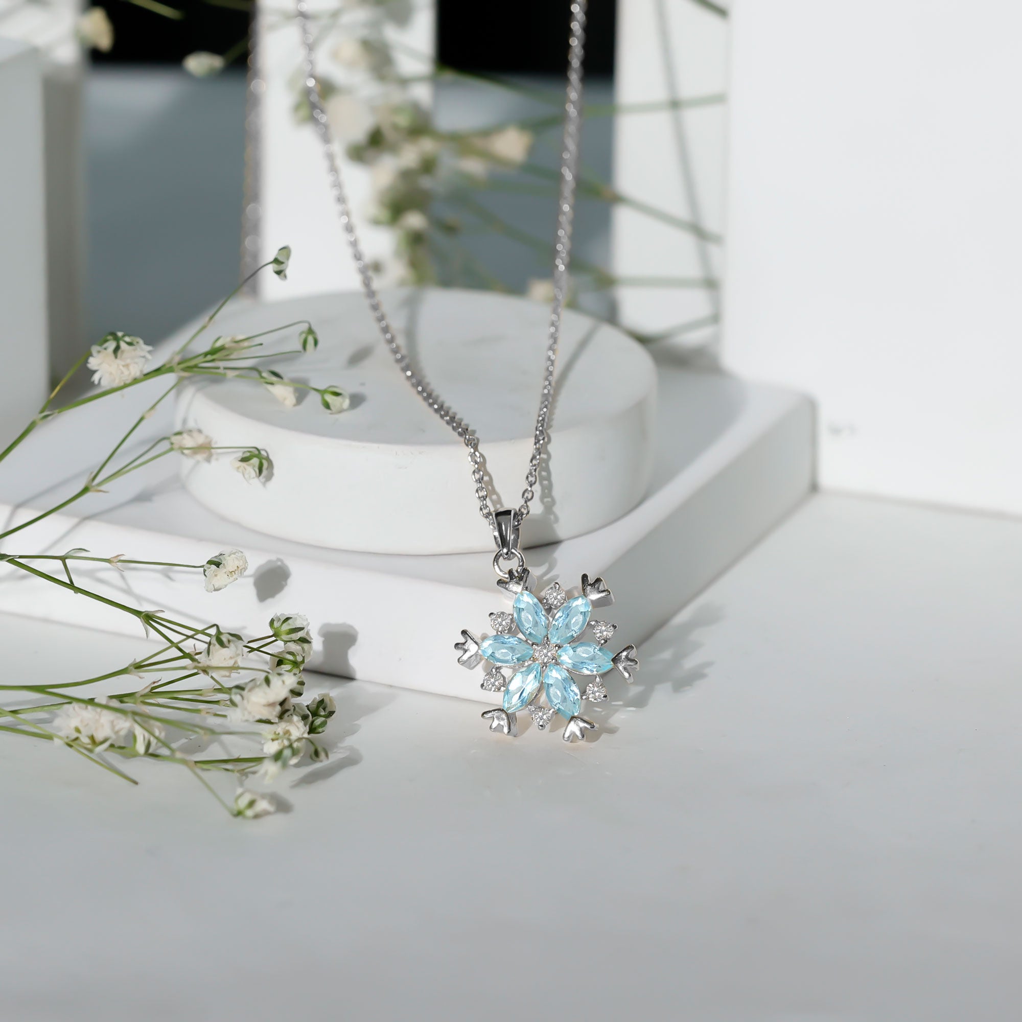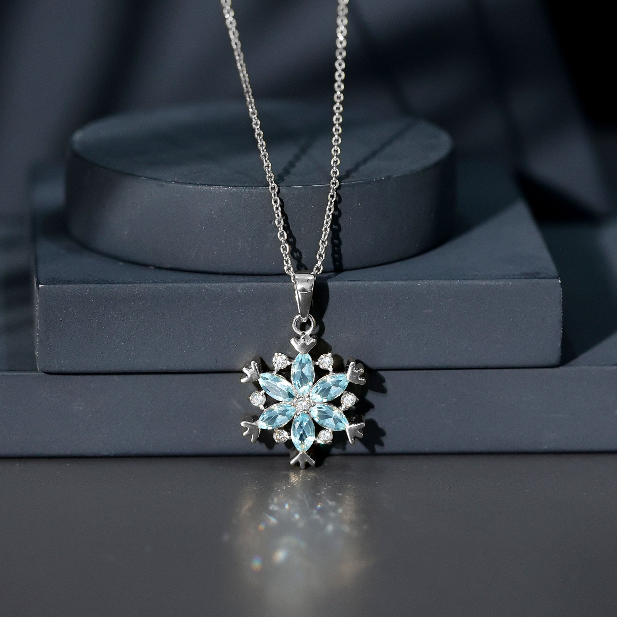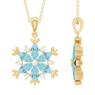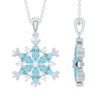 Surprise her with this exquisite Snowflake Pendant, featuring a stunning combination of Marquise Cut Sky Blue Topaz and round shape Diamonds in a prong setting. This luxurious pendant is the perfect addition to any jewelry collection.