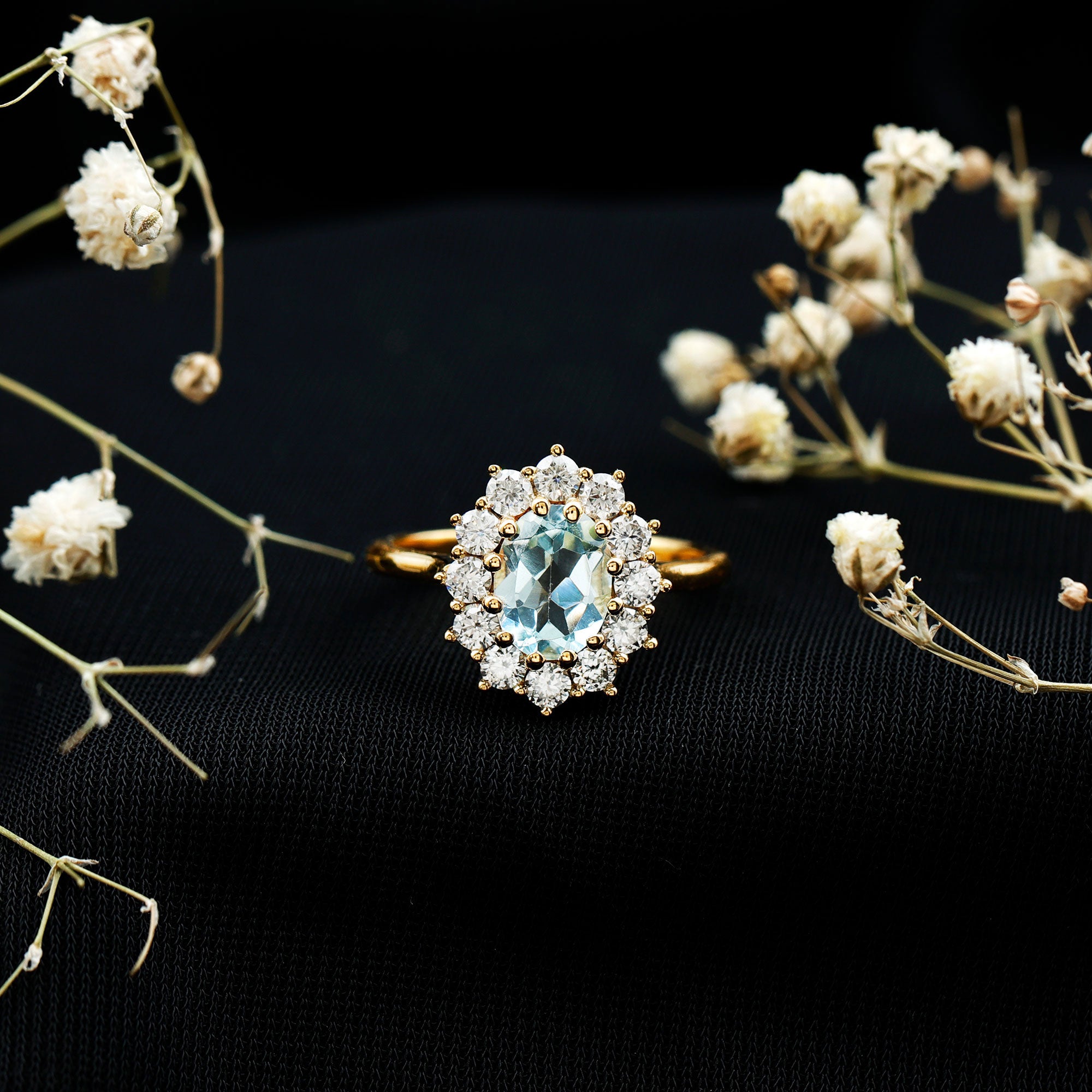 Sky Blue Topaz Oval Halo Engagement Ring with Moissanite