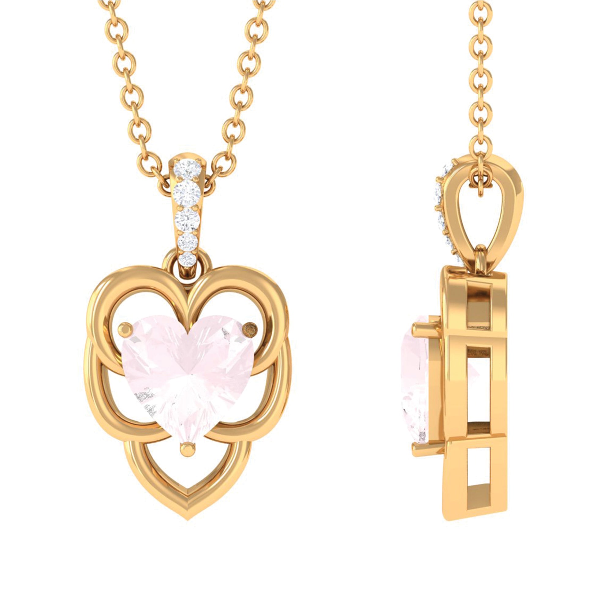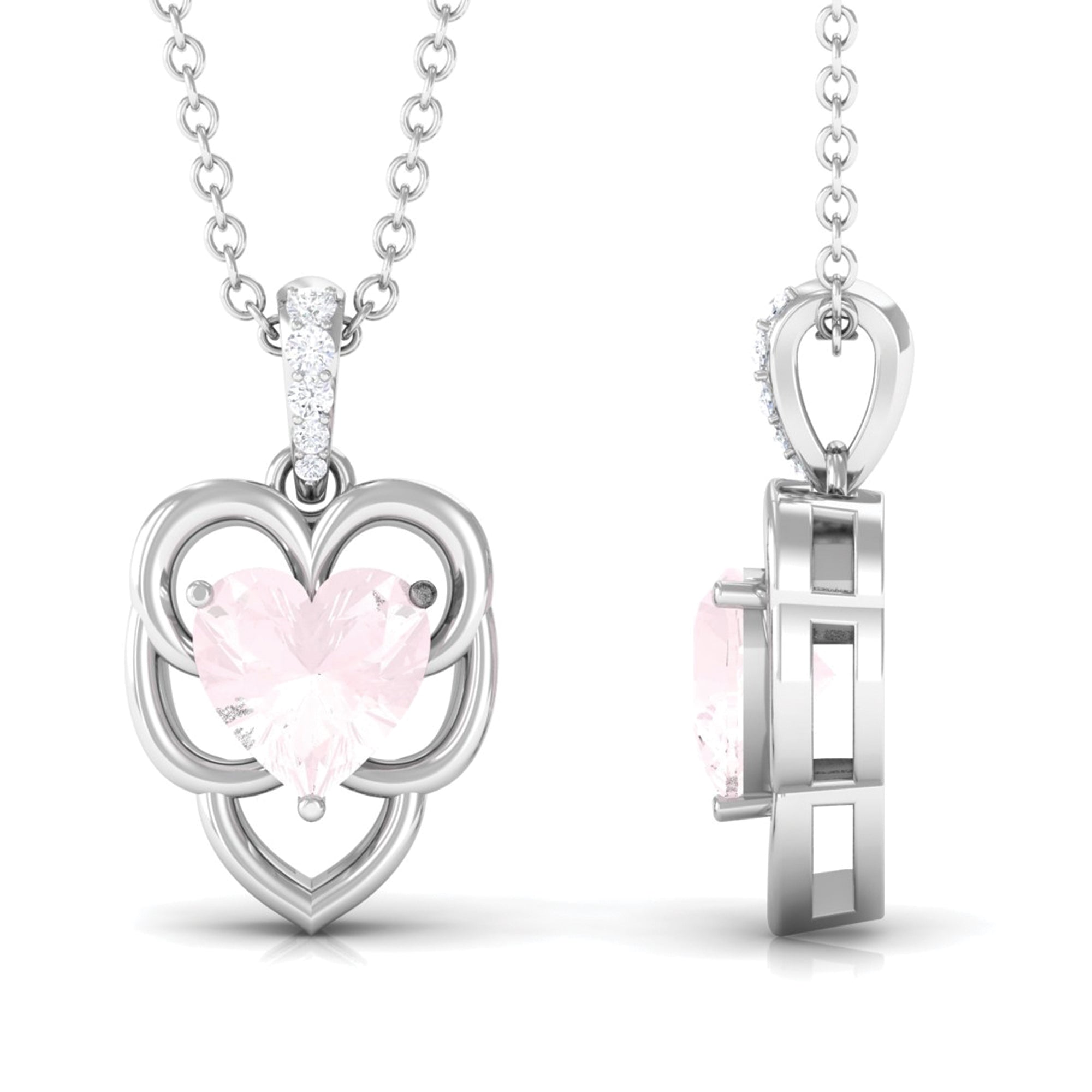 Solitaire 8 MM Rose Quartz Heart Necklace with Diamond