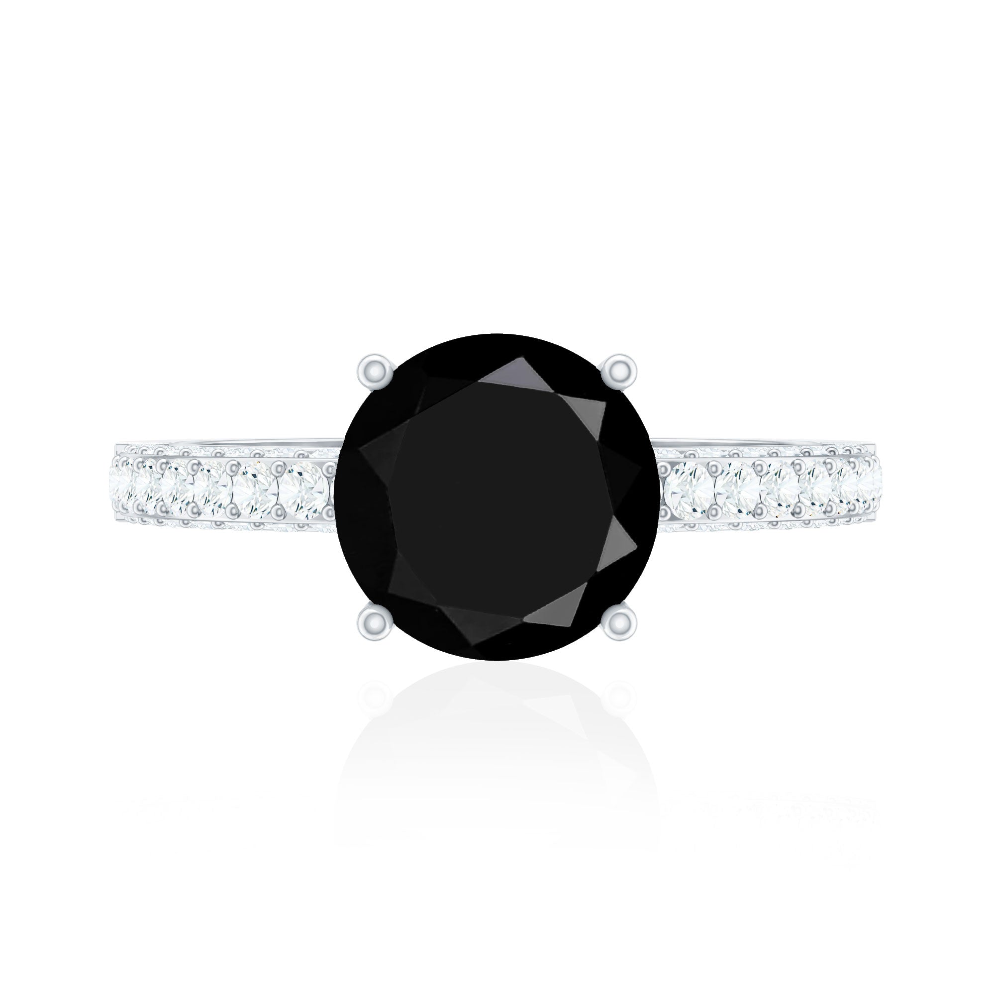 Solitaire 8MM Black Onyx Engagement Ring with Moissanite