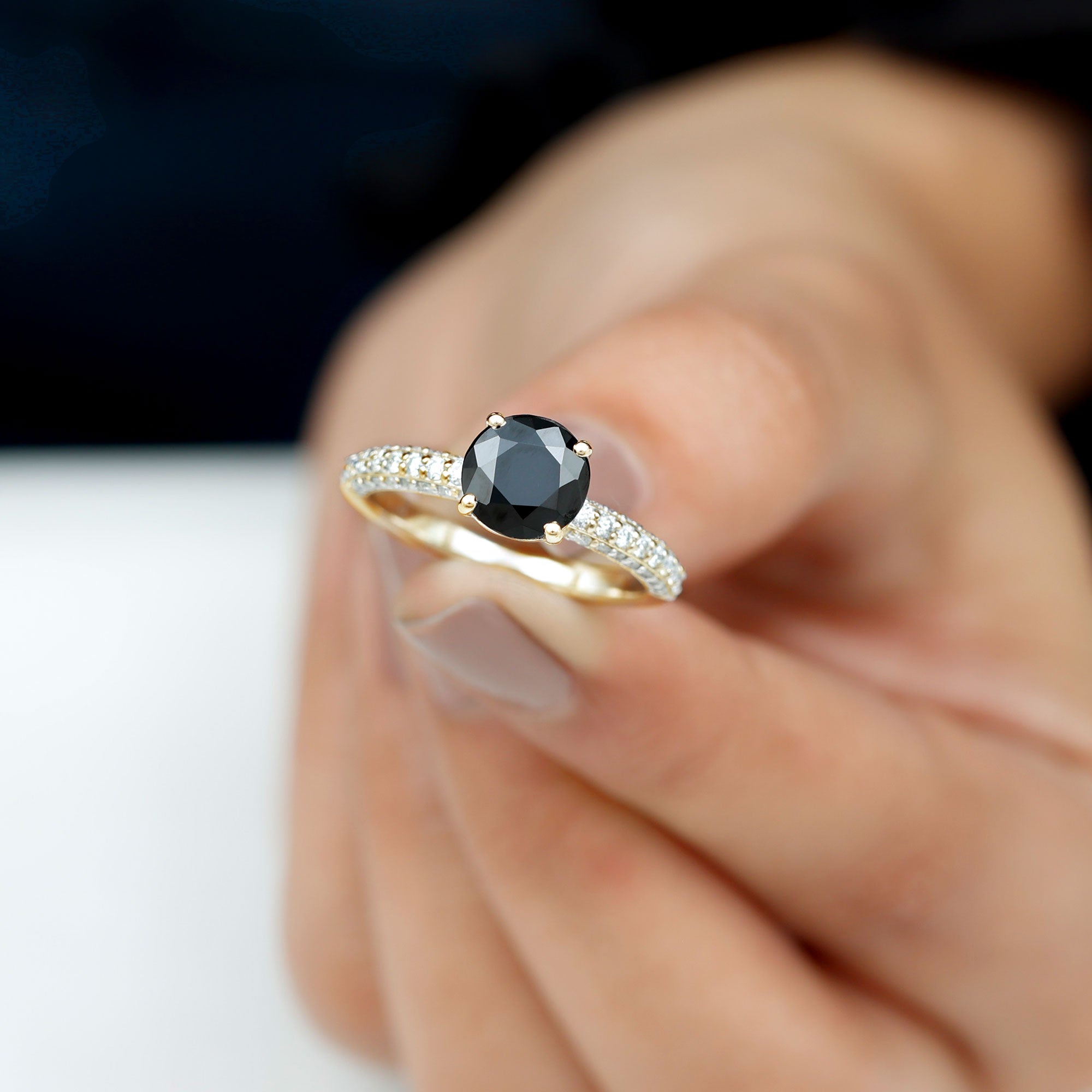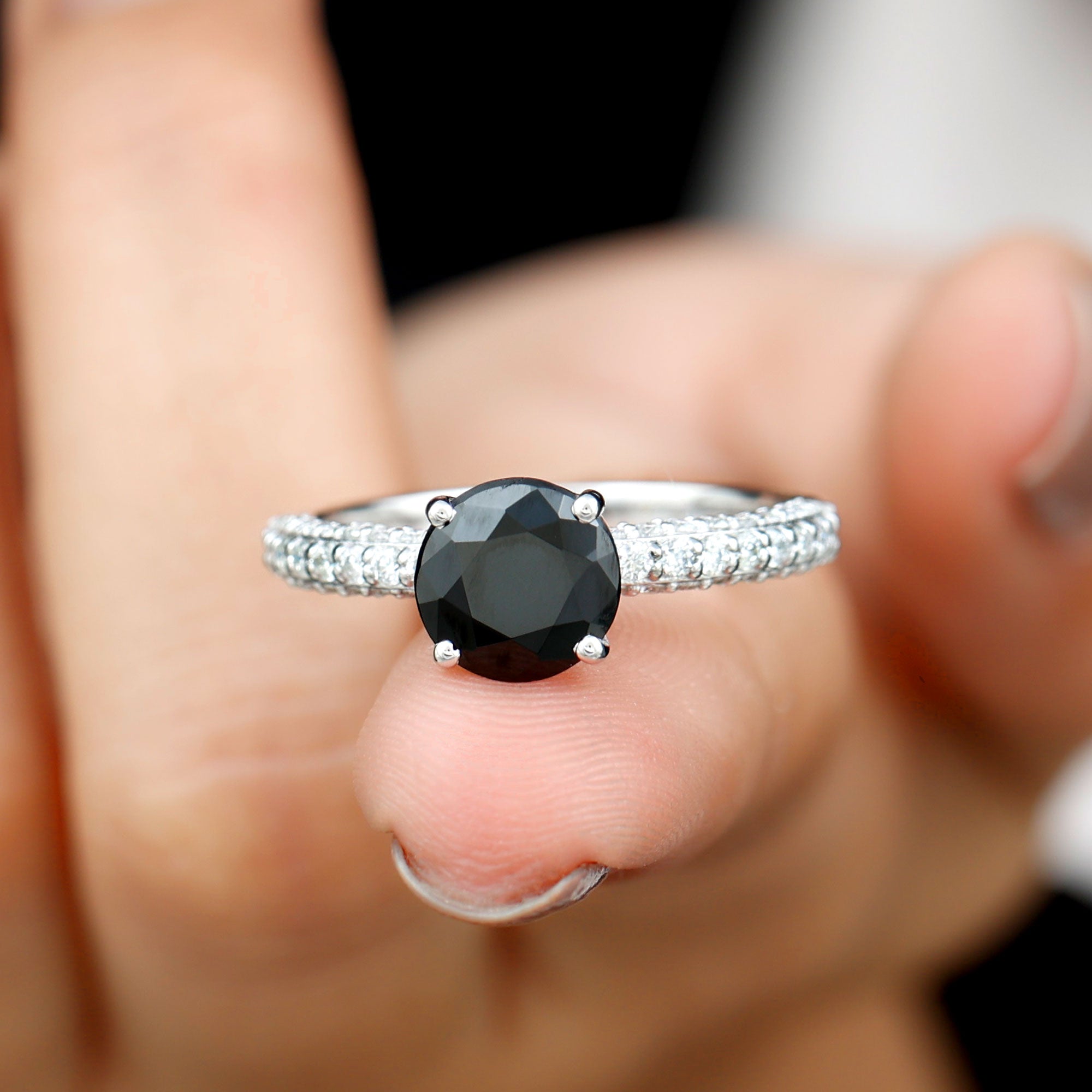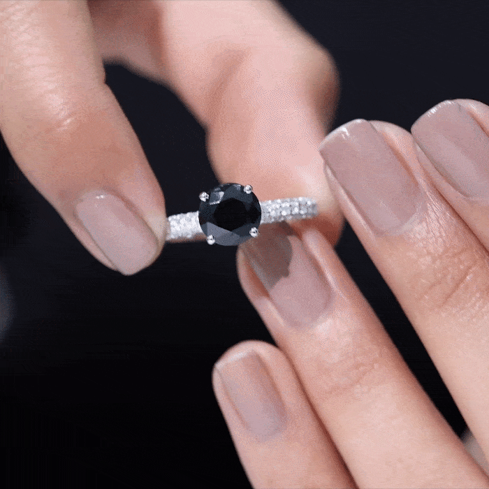 Classic style with a modern touch, this stunning Black Onyx Engagement Ring is a kind of jewelry she will never want to take off. This Solitaire Ring is designed to make your special moment unforgettable. At its center is an 8 MM round black onyx stone, set in basket setting that lifts the gem slightly above the band, allowing it to catch the light and stand out beautifully. The bold black onyx draws attention naturally, becoming the highlight of this elegant December Birthstone Ring. On each side of the onyx, sparkling round moissanite stones are carefully placed along the band. Their bright shine adds a delicate sparkle without overshadowing the main stone. Every part of this Onyx and Moissanite Ring is crafted with care to balance bold beauty and deep meaning. This Black Stone Engagement Ring is more than just jewelry, it is a symbol of your unique story and the promise you share. Presented in a lovely gift box, this Black and White Ring combines timeless elegance with lasting beauty. Whether it is for a proposal or a special gift, this ring offers a meaningful and stylish way to celebrate your journey together.
