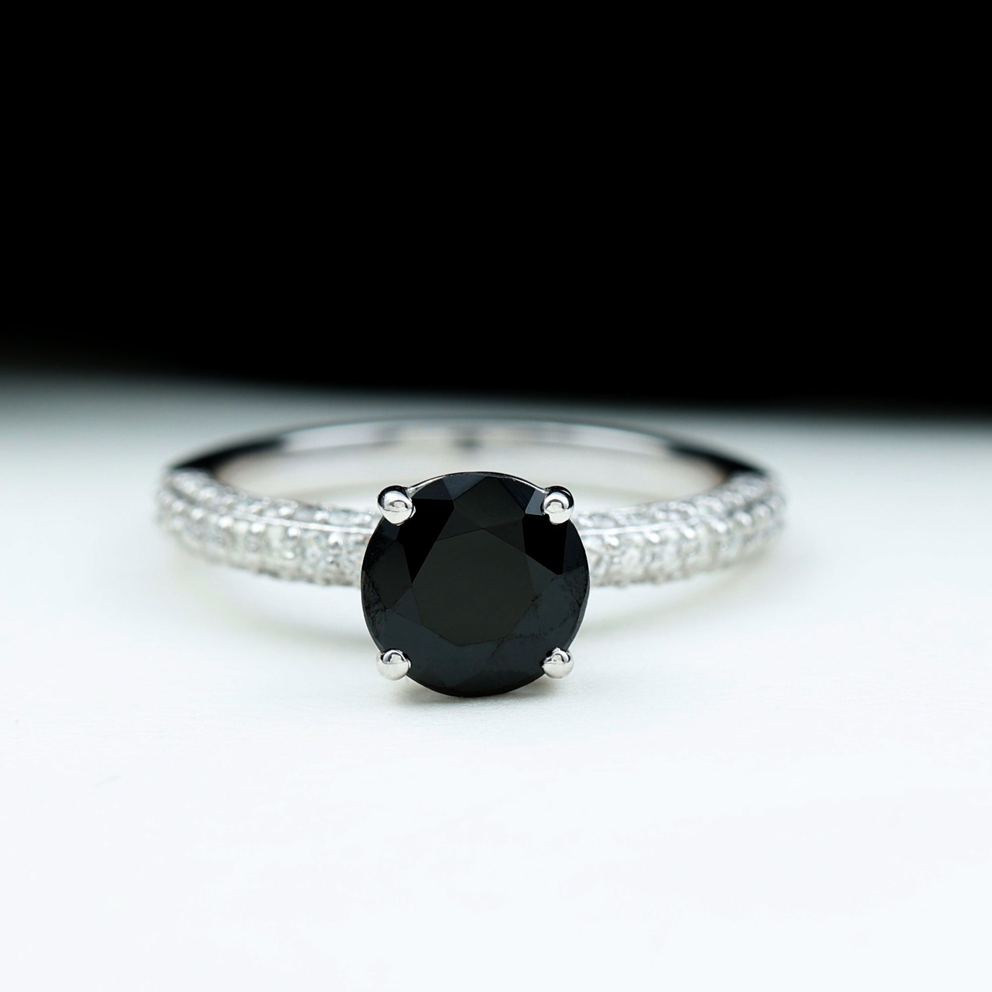 Solitaire 8MM Black Onyx Engagement Ring with Moissanite