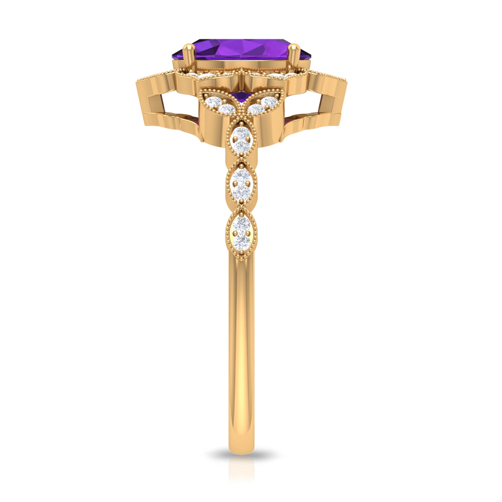 Solitaire Amethyst Engagement Ring with Diamond Accent