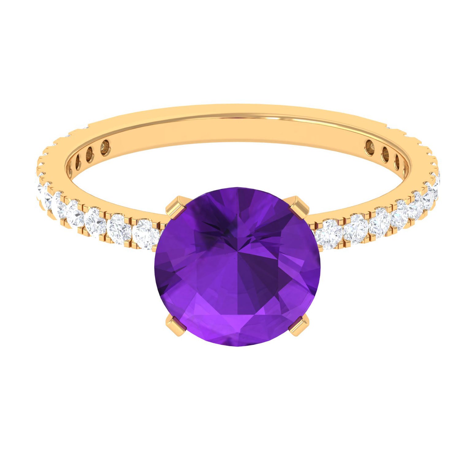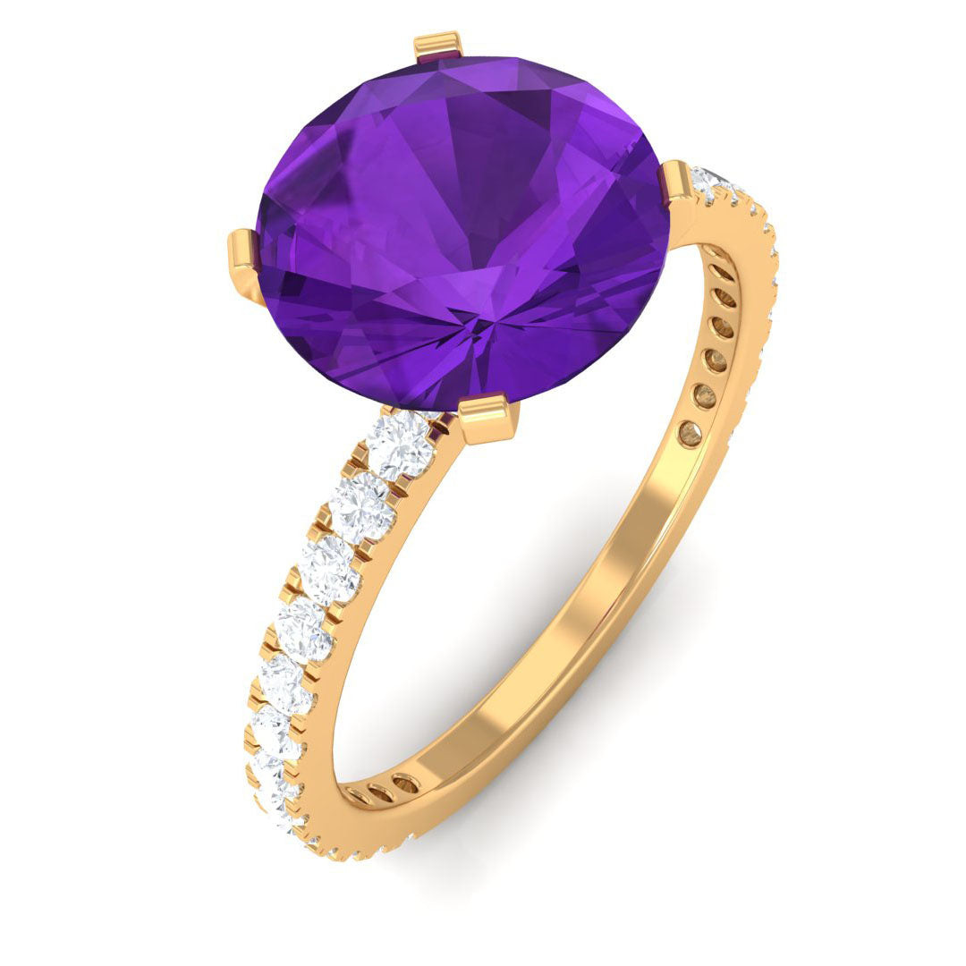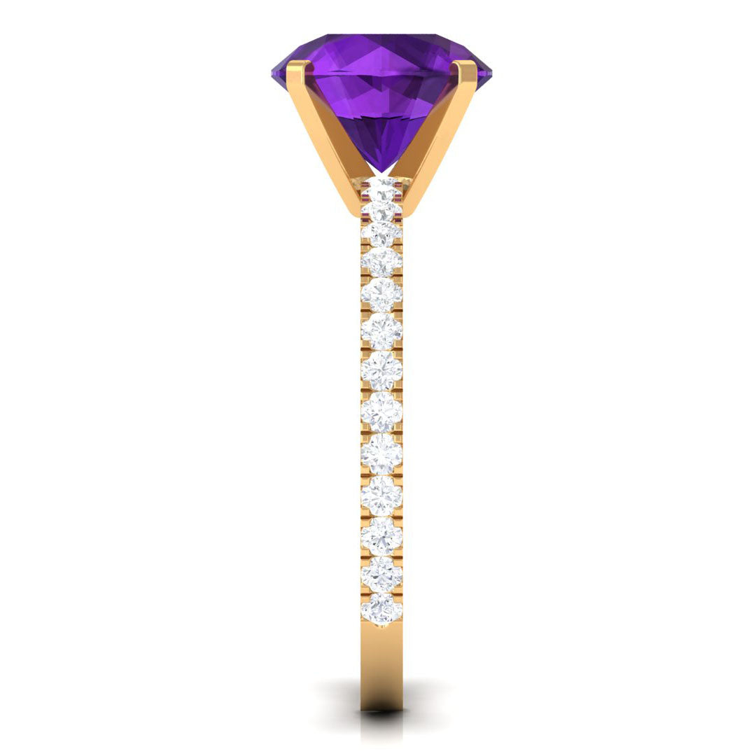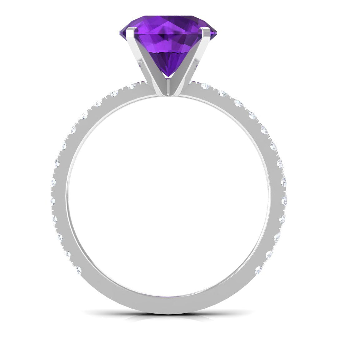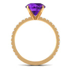 Solitaire Amethyst Engagement Ring with Diamond Side Stones