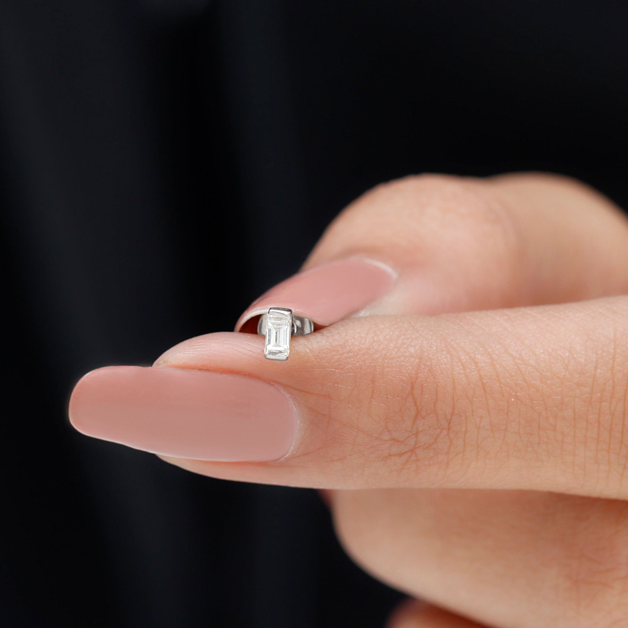 Solitaire Baguette Diamond Earring for Tragus Piercing