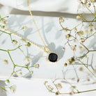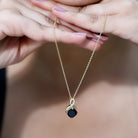 Celebrate strength, love, and timeless elegance with this beautifully crafted Black Onyx Necklace. Handmade in yellow gold plated silver, this meaningful Solitaire Pendant features a bold 8 MM cushion cut Black Onyx, securely set in prongs. Above the center stone sits a graceful infinity symbol, delicately accented with round lab grown diamonds, adding a hint of sparkle and symbolism. Together, they form a pendant that is both modern and meaningful, a gentle reminder of forever love and unbreakable bonds. The combination of AAA quality Black Onyx and EF color VS clarity lab grown diamond gives this Infinity Pendant Necklace an elegant contrast, dark and mysterious with a soft sparkle that catches the light just right. The Cushion Cut Pendant dangles from a sleek chain, resting beautifully along the neckline, whether worn alone or layered with other favorites. Perfect for everyday wear or special occasions, this Black and White Necklace makes a heartfelt gift for birthdays, anniversaries, or simply to show your love.