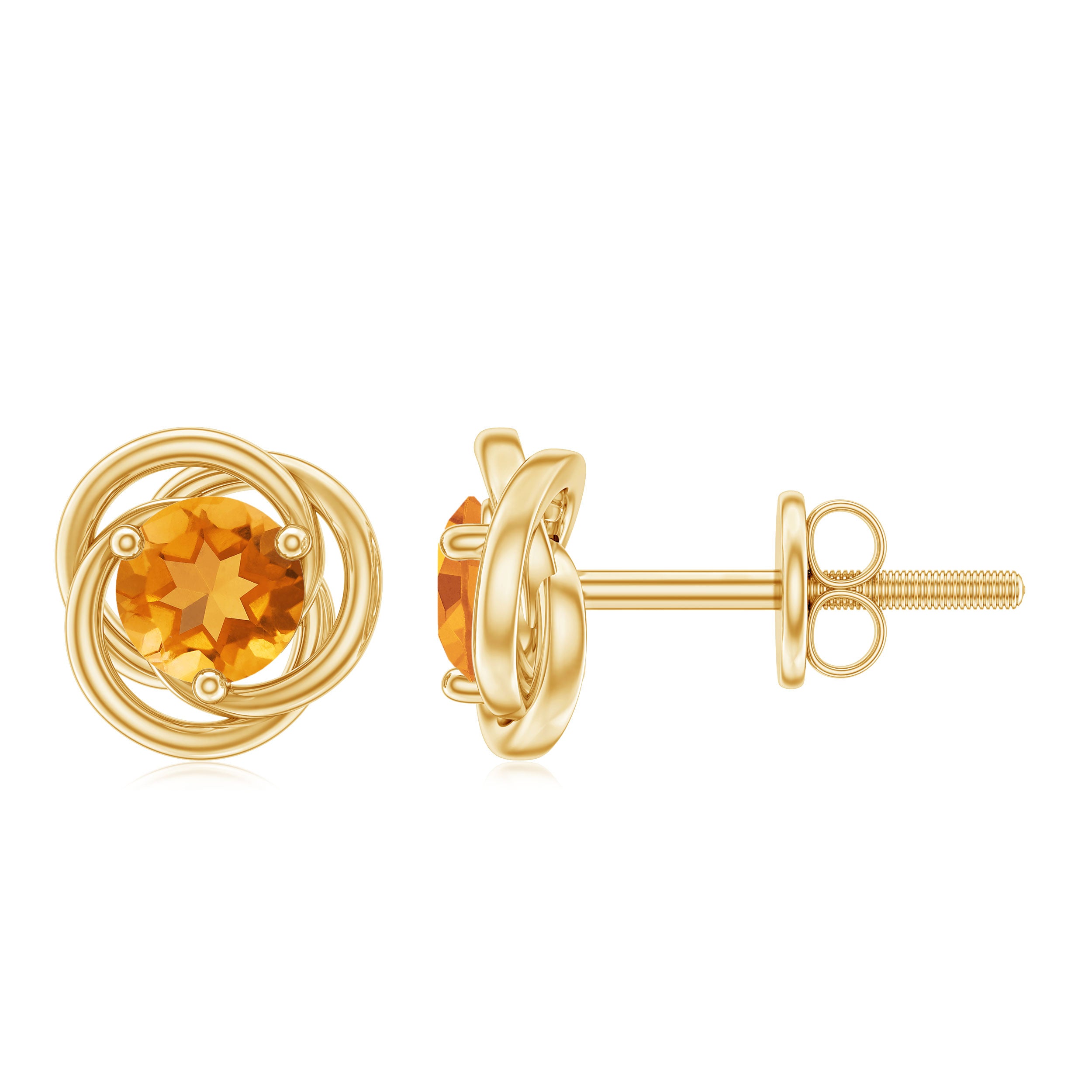 Solitaire Citrine Swirl Stud Earrings in 3 Prong Setting