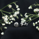 Solitaire Created Black Diamond Swirl Stud Earrings in 3 Prong Setting