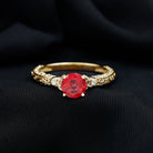 Solitaire Created Ruby Celtic Knot Ring with Diamond