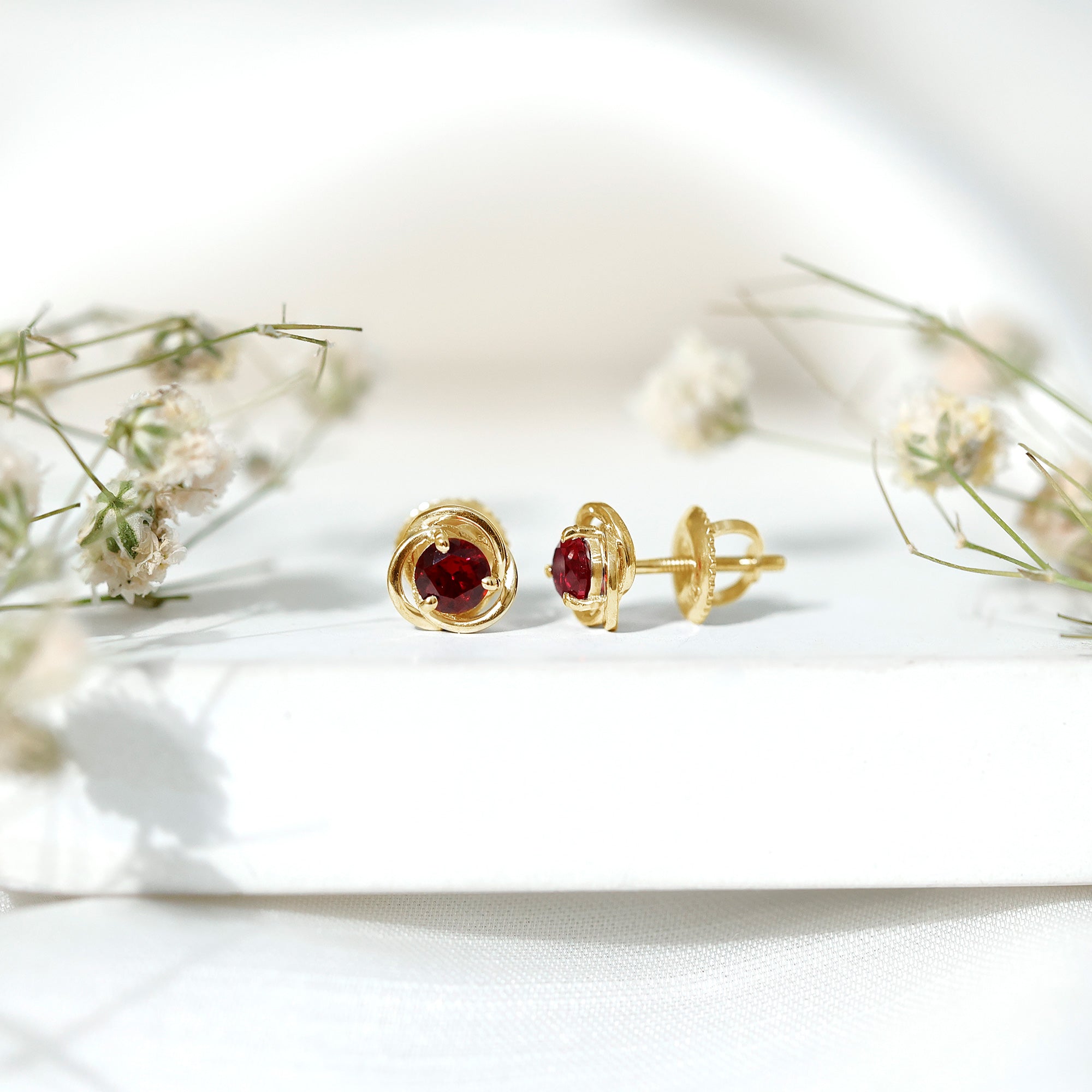 Add a touch of brilliance to your casual wear with these Created Ruby Simple Swirl Earrings. The Round Cut Created Ruby, delicately set in Prong Setting, perfectly complements your office jewelry.