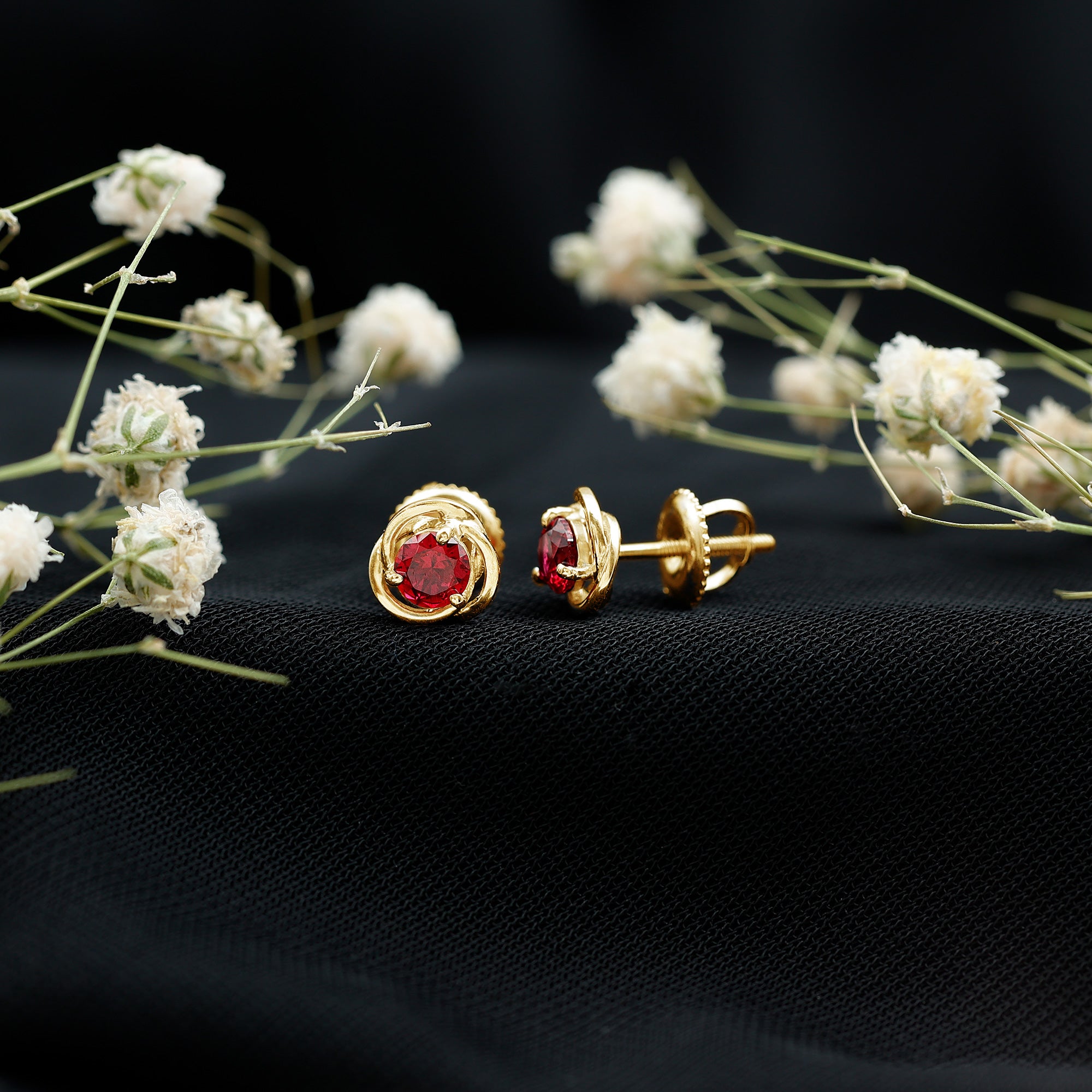 Solitaire Created Ruby Swirl Stud Earrings in 3 Prong Setting