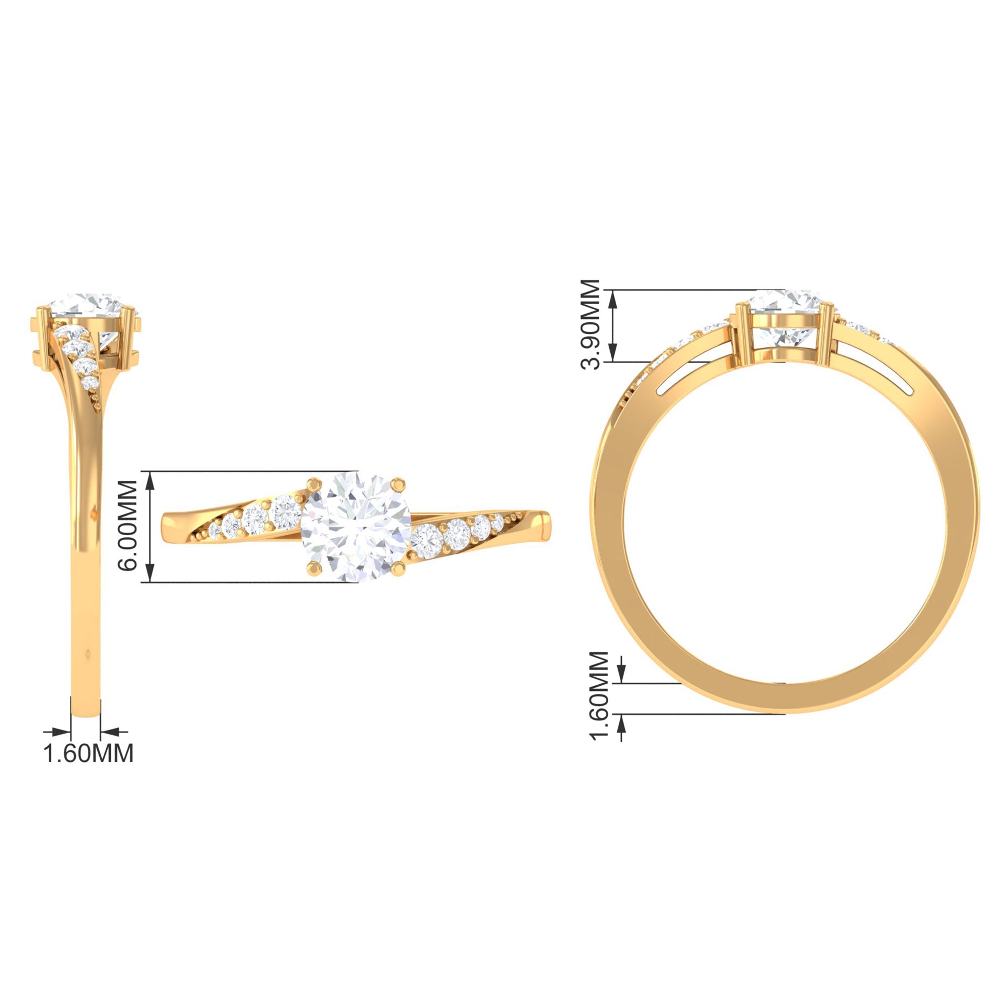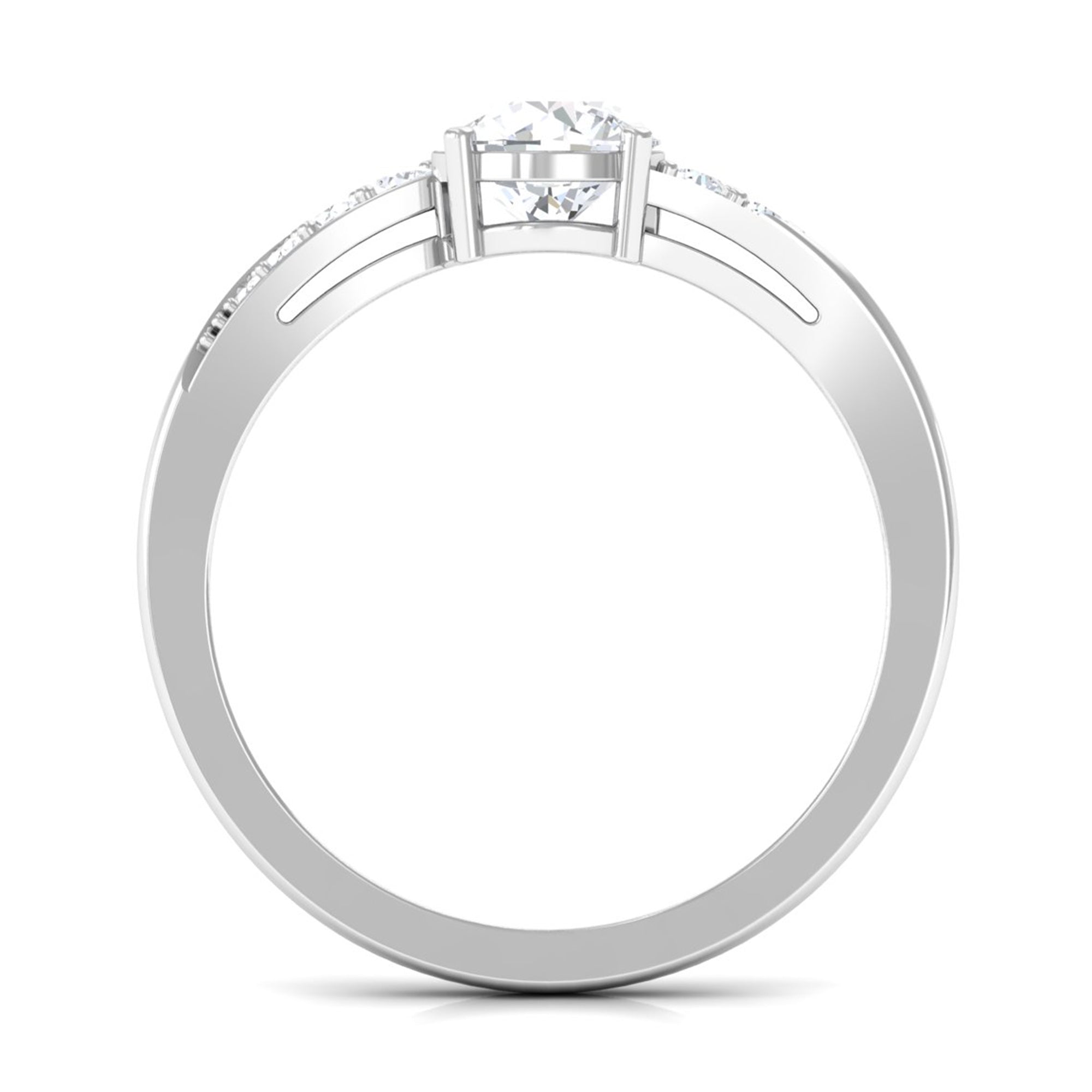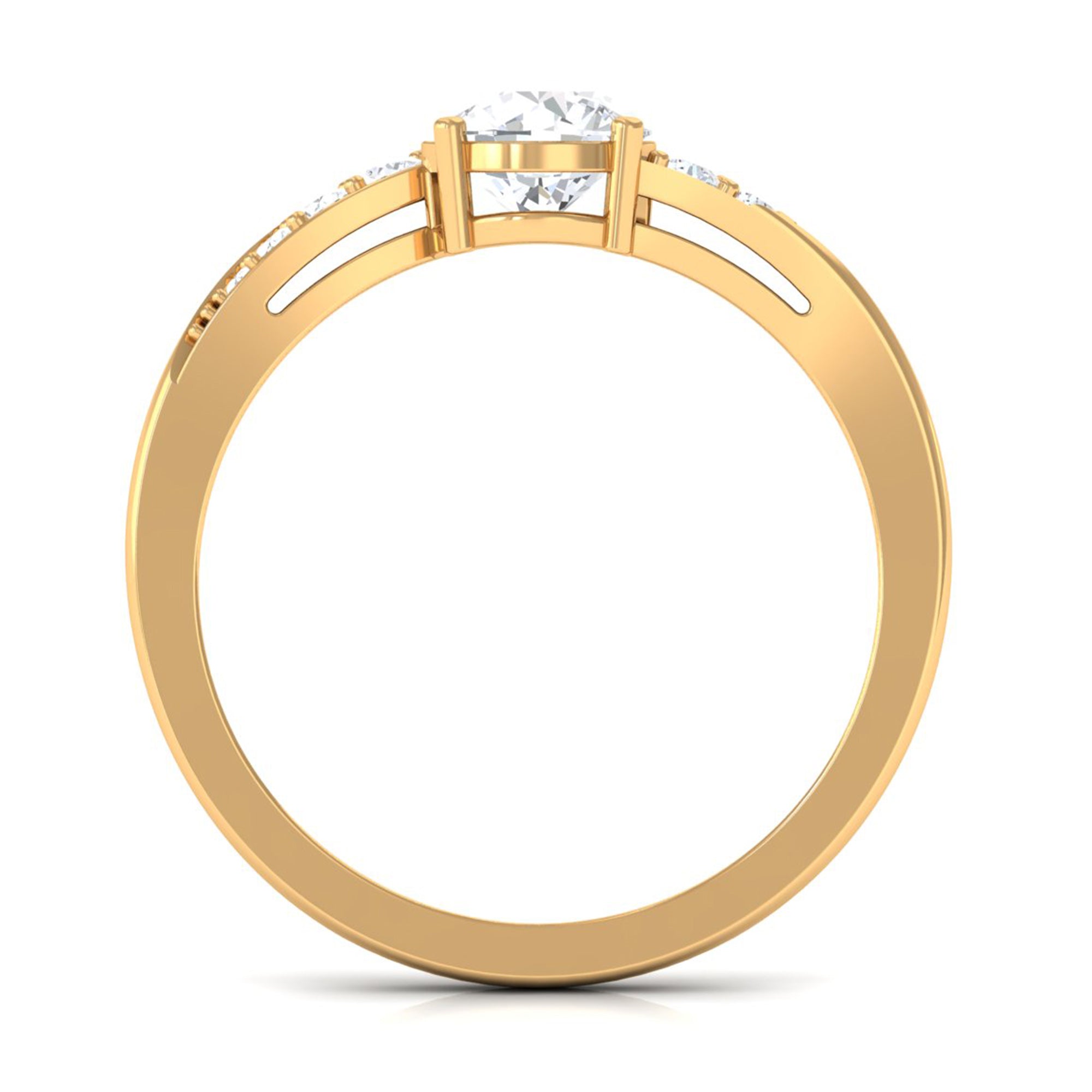 Jewelry has the power to be the one little thing that makes you feel unique. This Solitaire Bypass Engagement Ring is embellished with Round Cut Zircon in Bypass Shank. This Simulated Diamond Engagement Ring is crafted in gold. Tell your story by wearing this Beautiful Gemstone Ring.