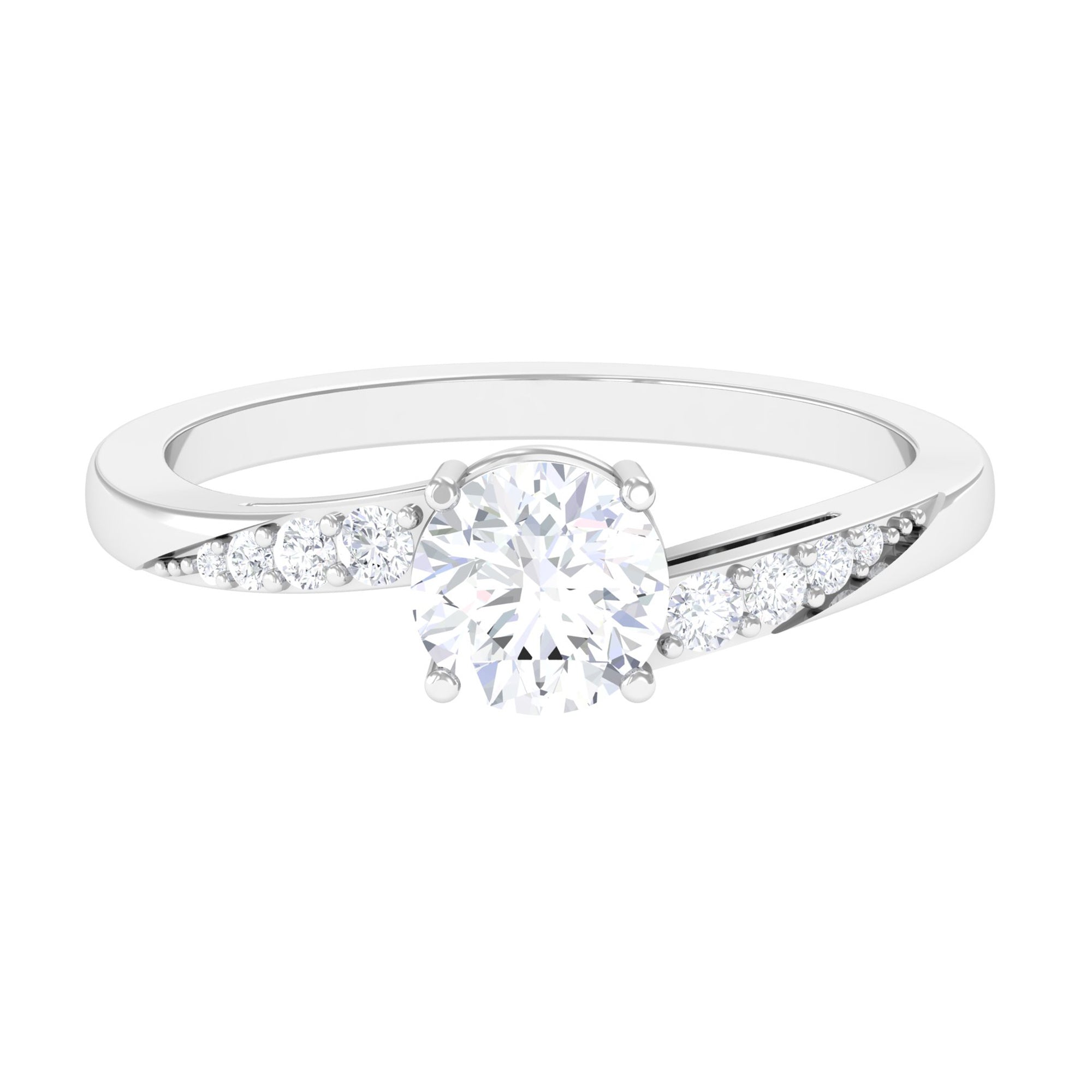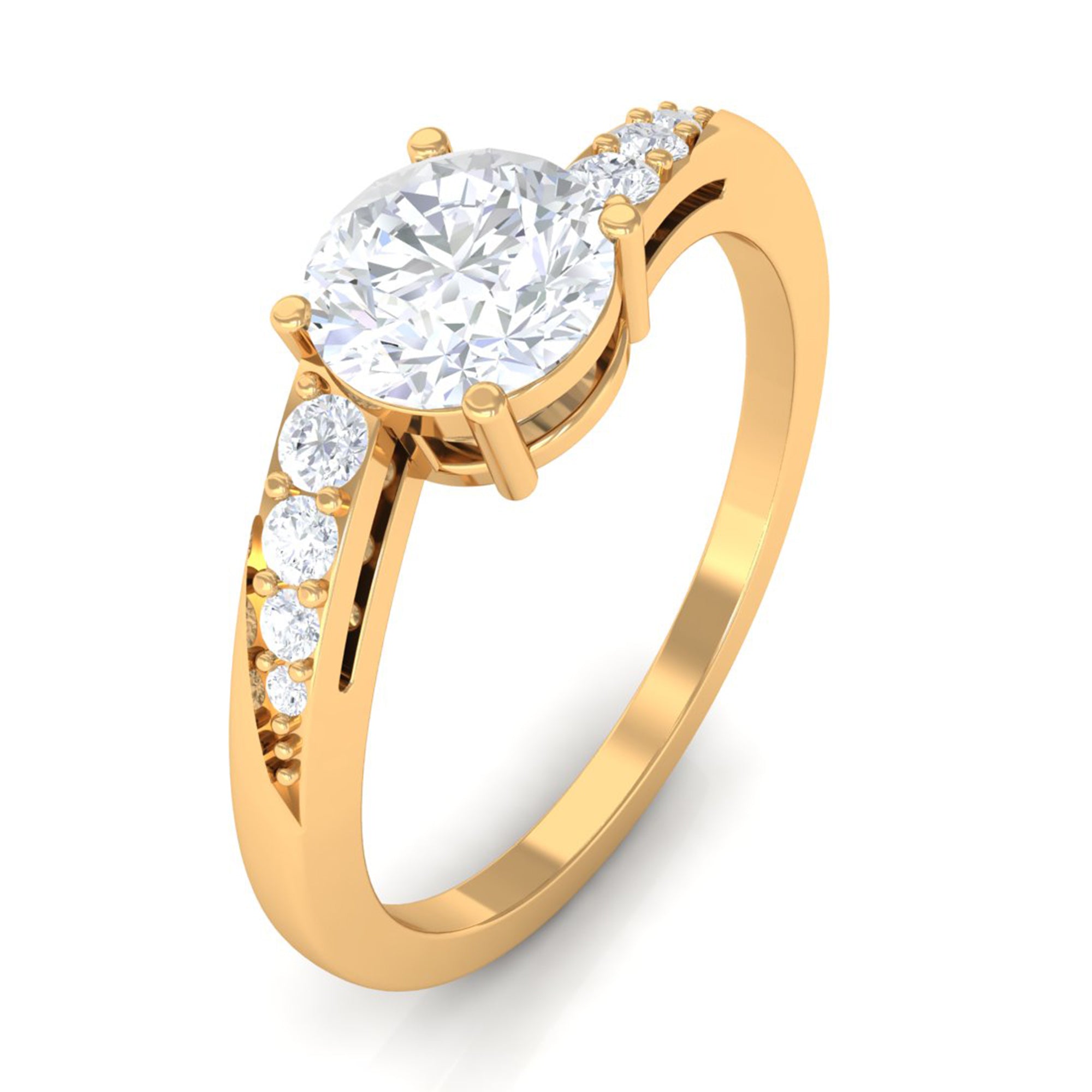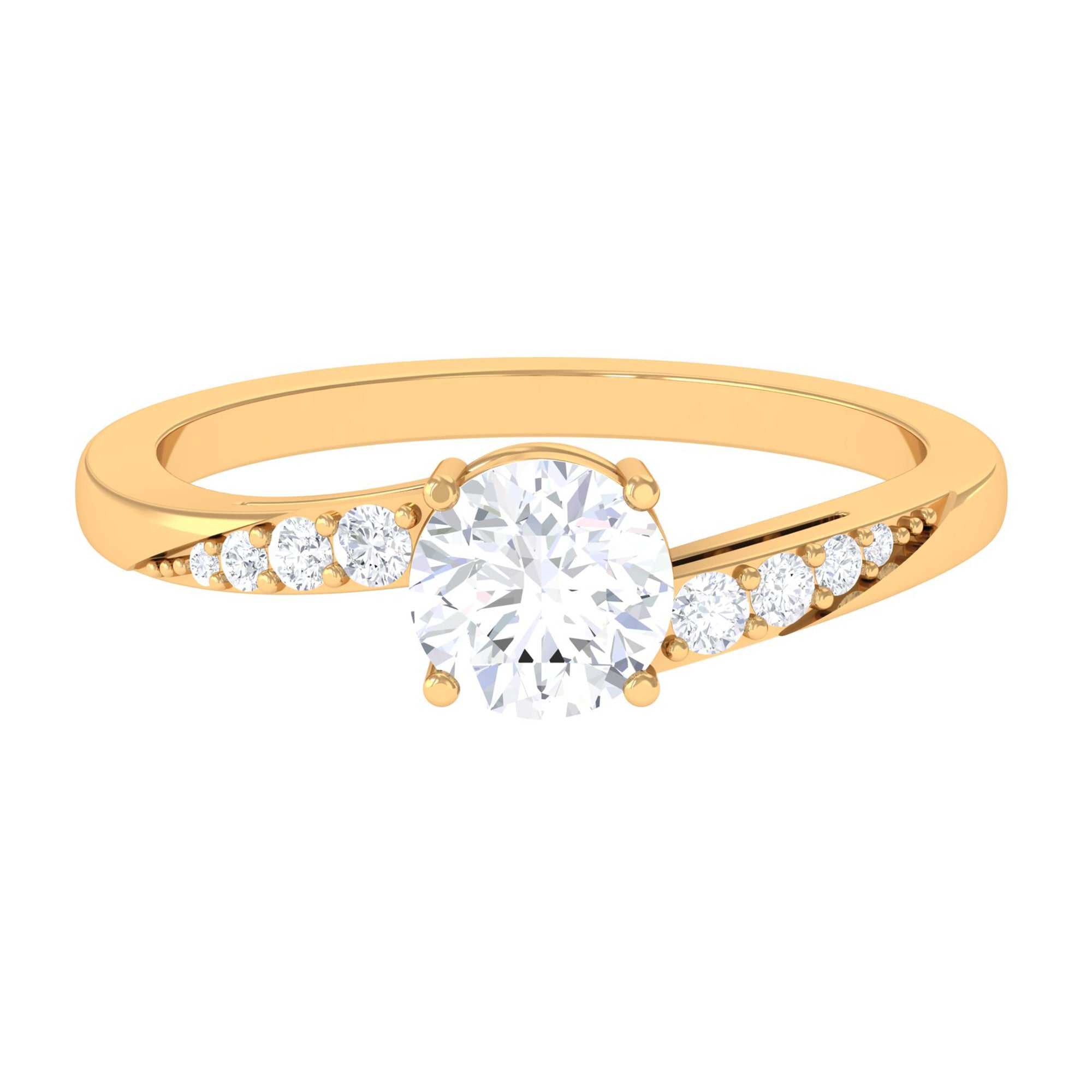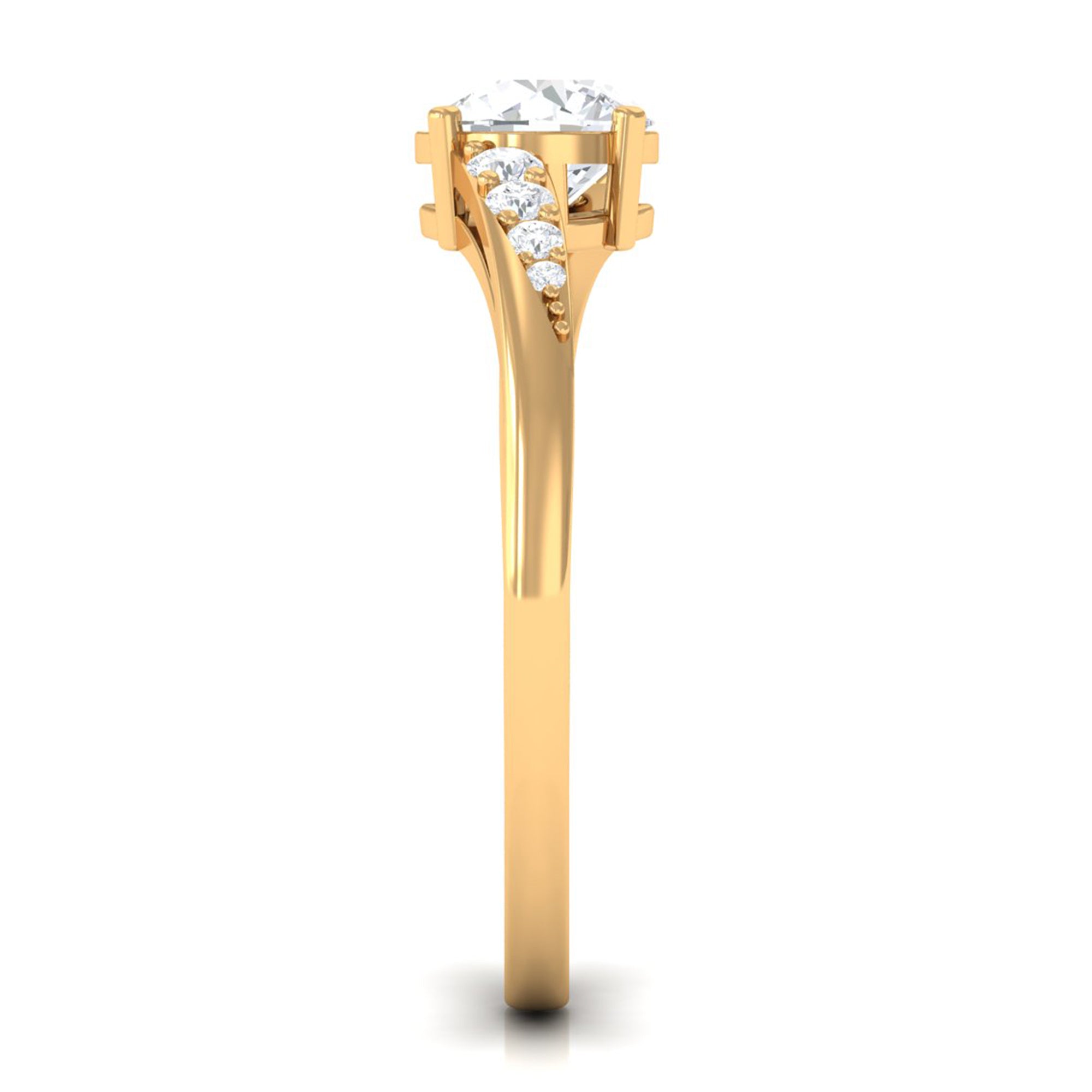 Jewelry has the power to be the one little thing that makes you feel unique. This Solitaire Bypass Engagement Ring is embellished with Round Cut Zircon in Bypass Shank. This Simulated Diamond Engagement Ring is crafted in gold. Tell your story by wearing this Beautiful Gemstone Ring.