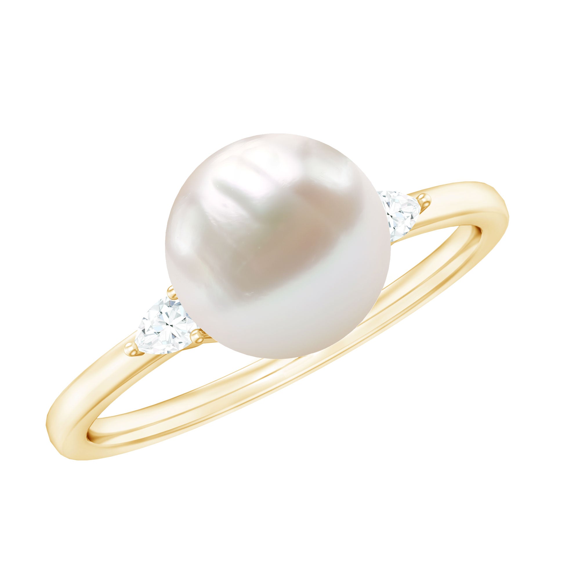 Solitaire Freshwater Pearl Engagement Ring with Diamond