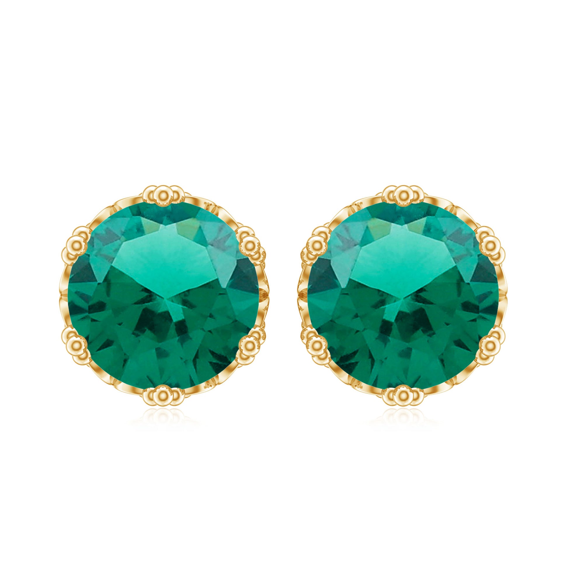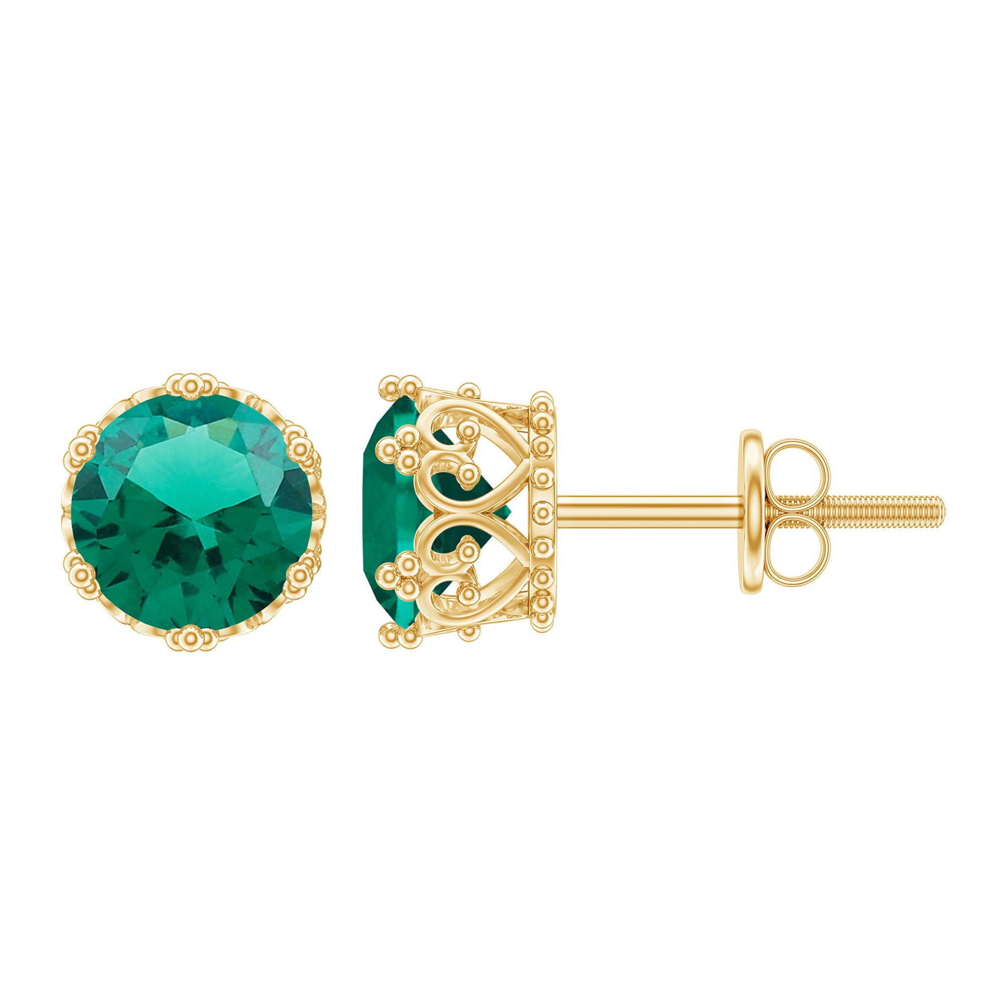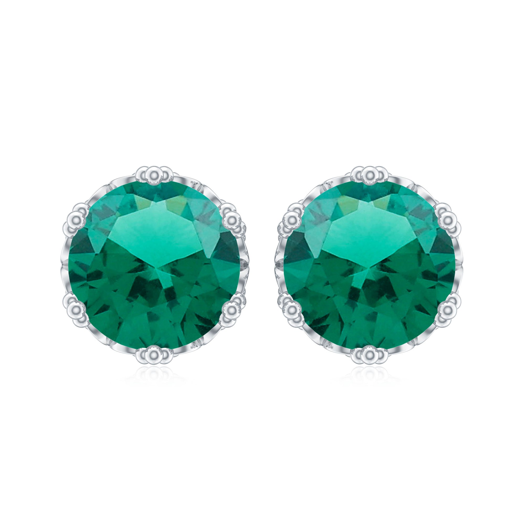 Solitaire Lab Created Emerald Stud Earrings in Crown Setting