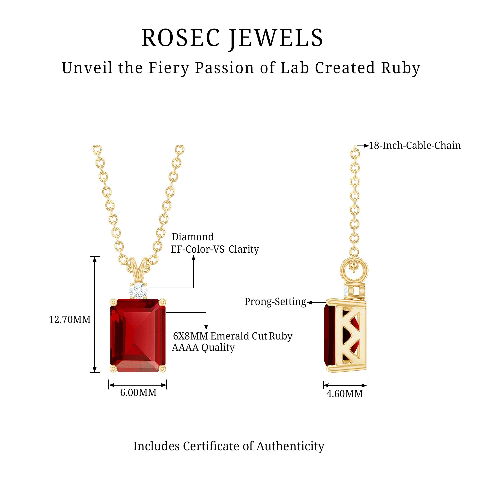 Solitaire Lab Created Ruby Emerald Cut Necklace with Silver Chain
