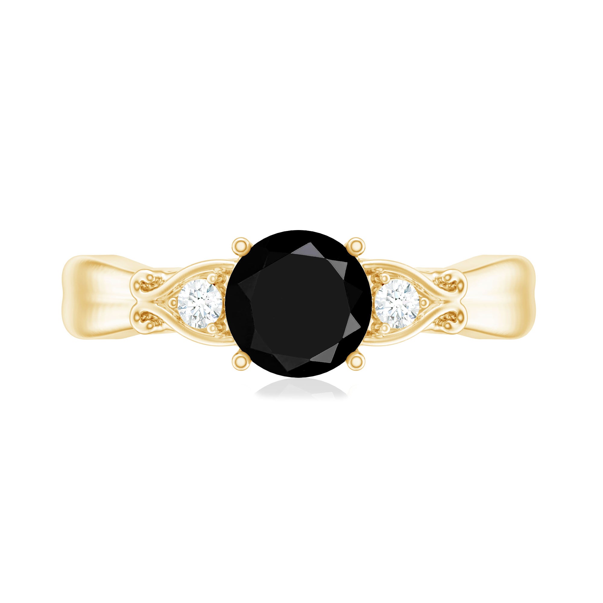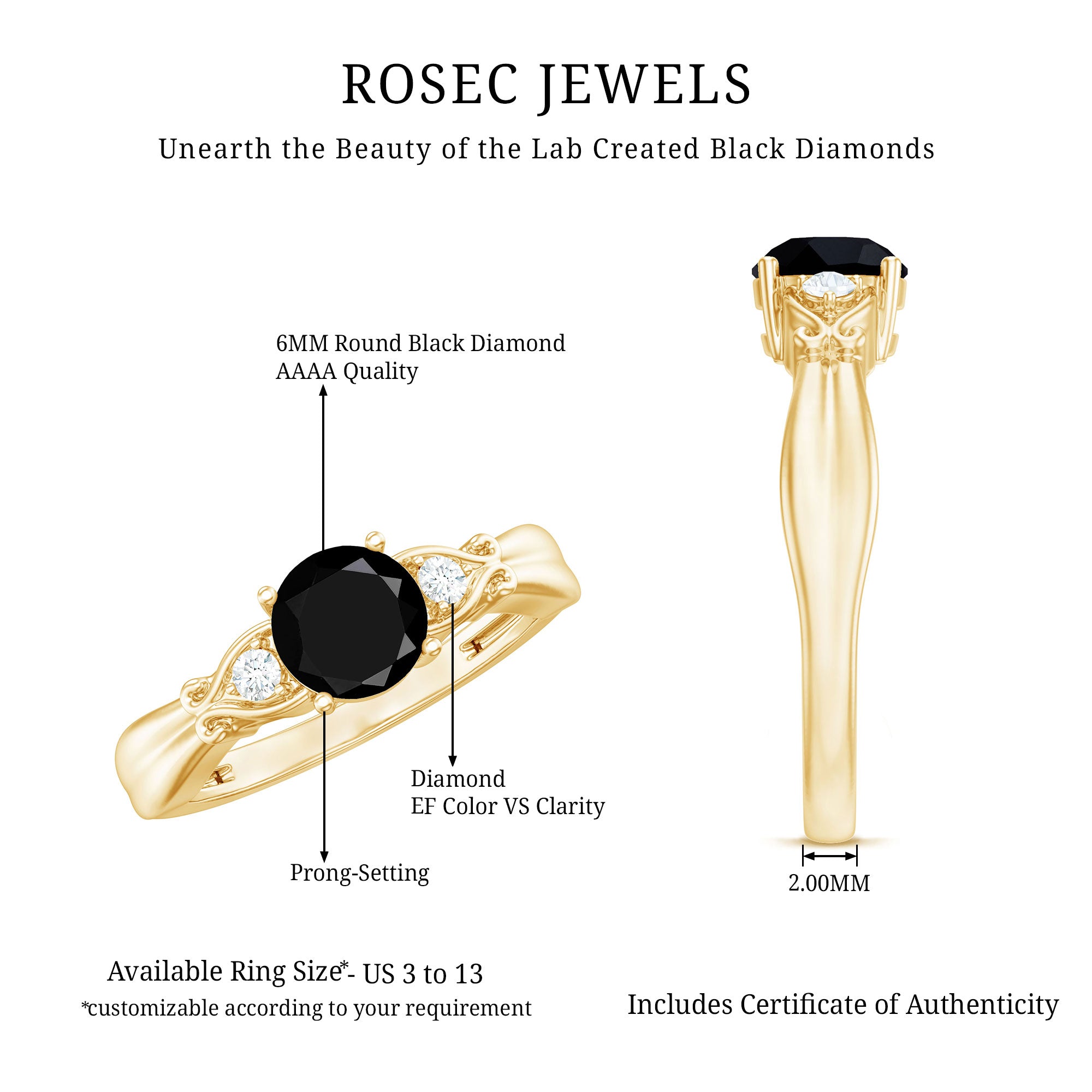 Immerse yourself in timeless elegance with the Solitaire Ring. Meticulously crafted, this exquisite piece features a stunning 6 mm round shaped Black Diamond with a White Diamond on either side that captures the essence of sophistication. Created by Aaaa Quality Black Diamonds and Ef-Vs Quality Diamonds which defines quality with innovation, this Black Diamond Ring (Unnatural) seamlessly blends tradition and contemporary allure. Elevate your promise with a token of enduring beauty that transcends trends, making every moment unforgettable.