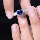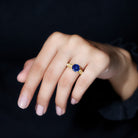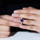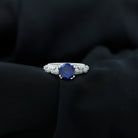 Solitaire Lab Grown Blue Sapphire Flower Engagement Ring with Diamond