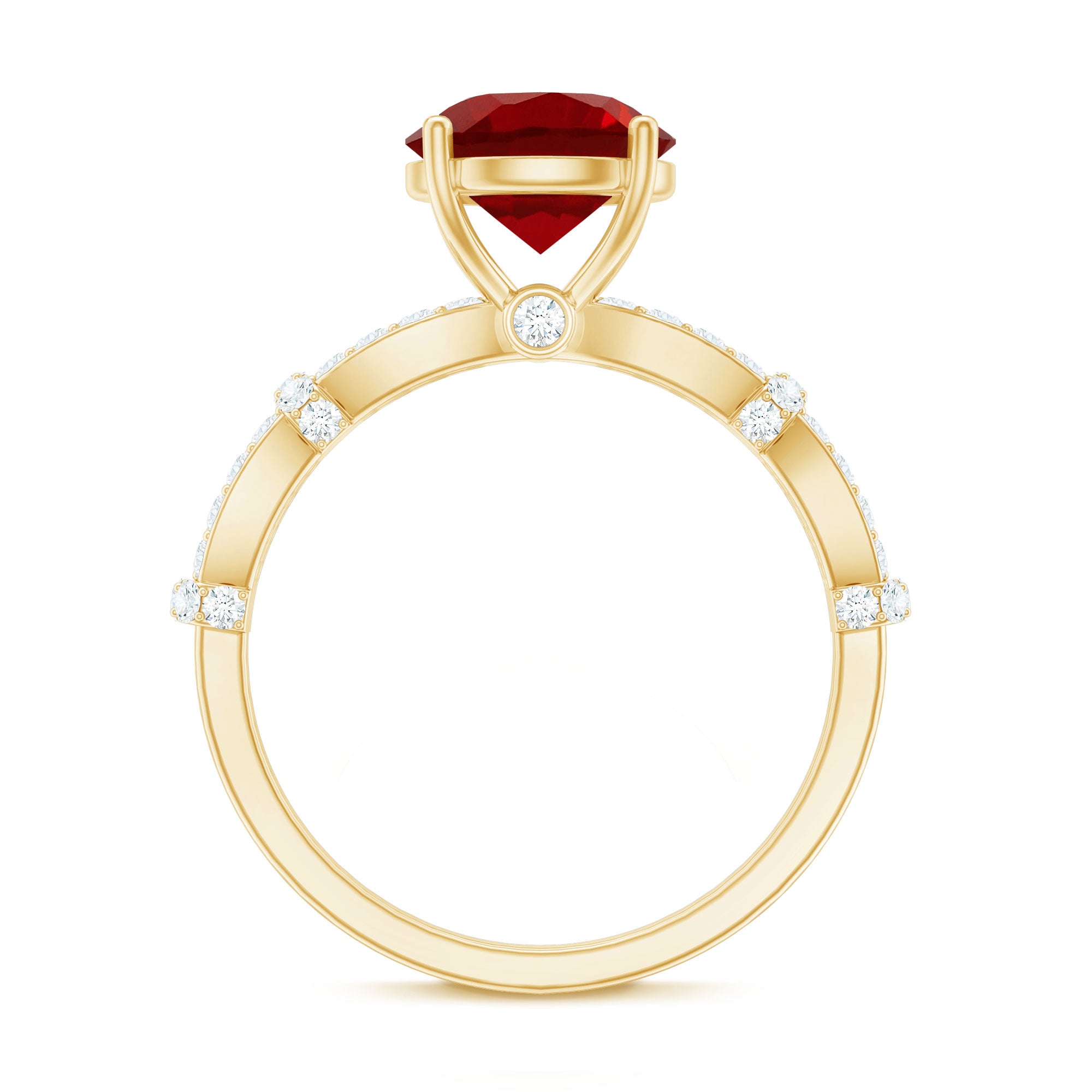 Solitaire Lab Grown Ruby and Diamond Criss Cross Engagement Ring