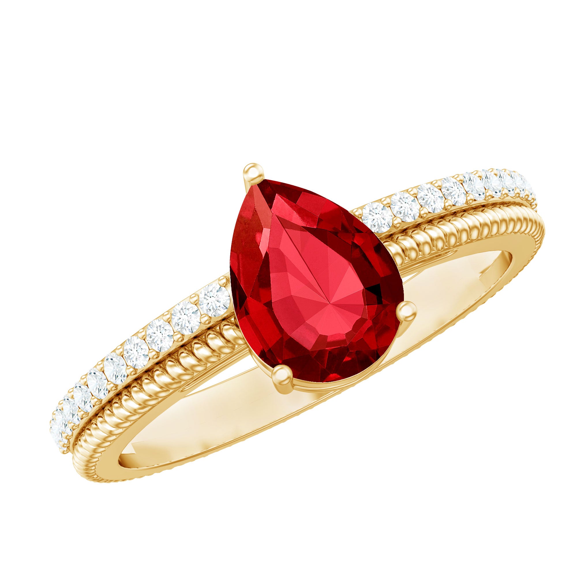 Solitaire Lab Grown Ruby Teardrop Engagement Ring with Diamonds