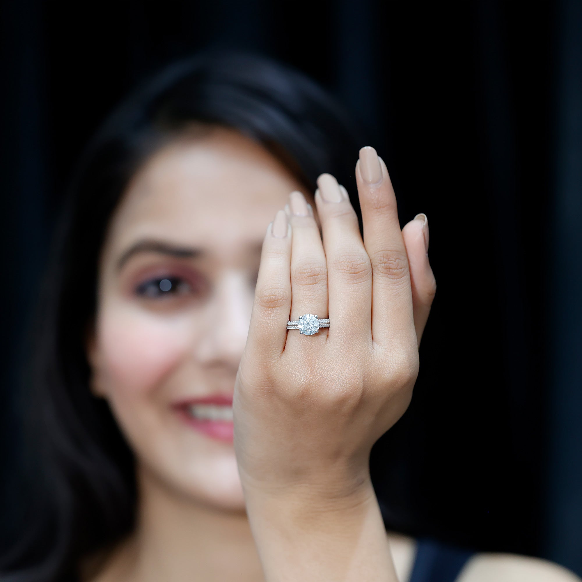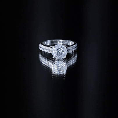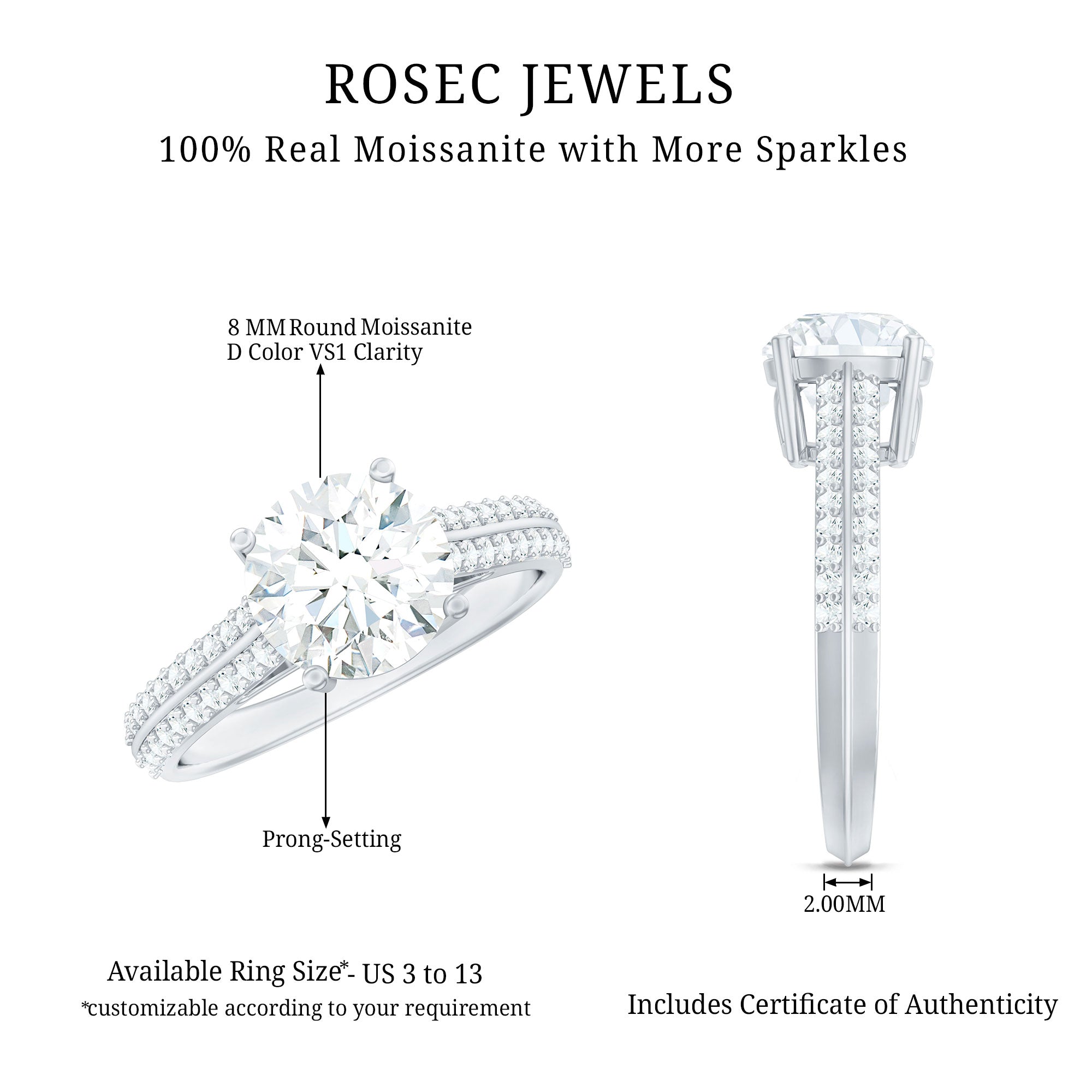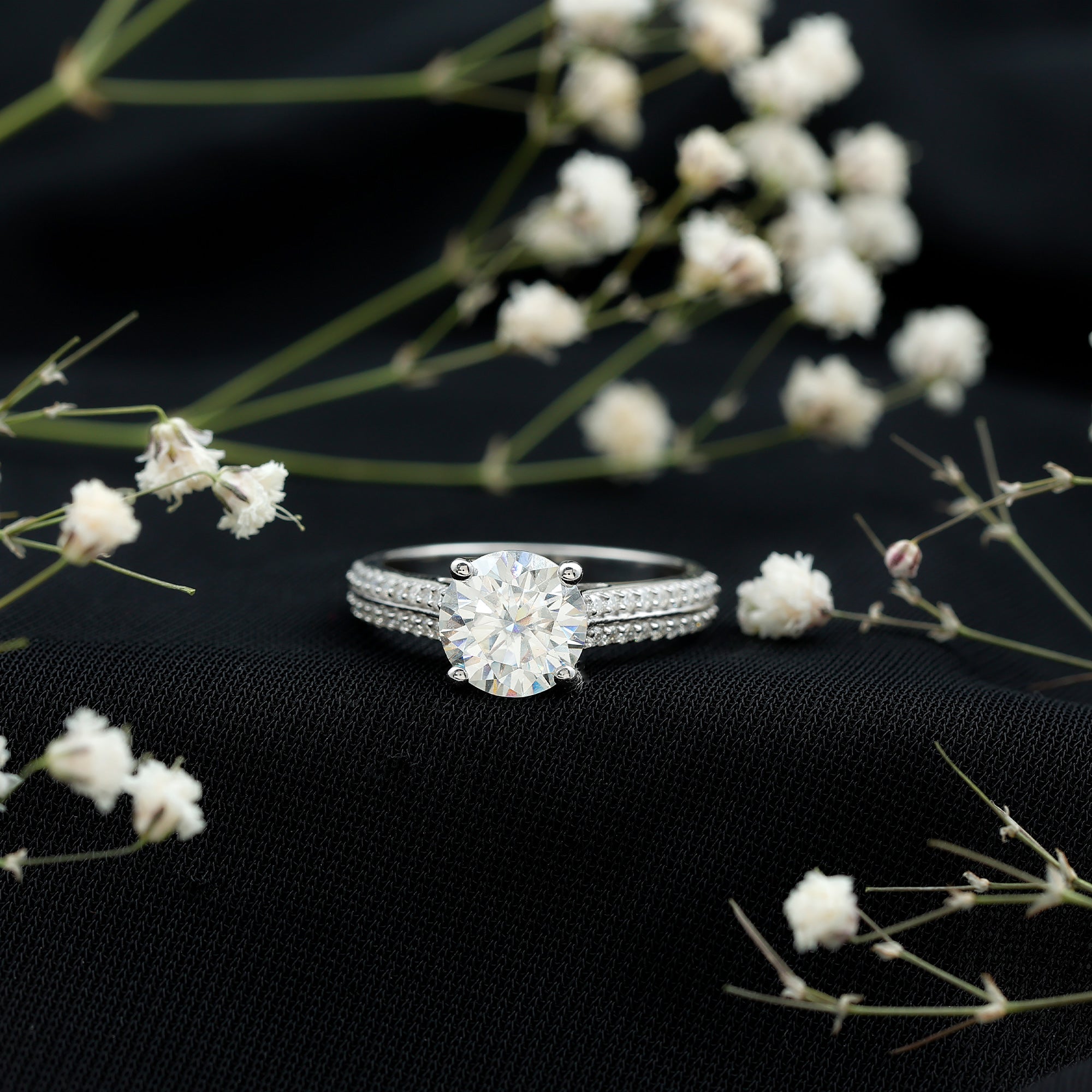 Solitaire Moissanite 2 Carat Engagement Ring with Side Stones