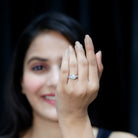 Make her fall in love again with you by presenting this Moissanite Engagement Ring that is precisely handcrafted with 14K White Gold Plated Silver. The ring features an 8 MM Round Shape Moissanite securely placed in 4 Prong Setting and embraced by the side stones on the shank. This Classic Engagement Ring will adorn her finger like your love, making her feel safe. The ring beholds the classic shine of D-VS1 Quality Moissanite, which makes it a perfect dazzler for the occasion. This Side Stone Engagement Ring will be delivered to you in a premium quality velvet pouch with a certificate of authenticity.