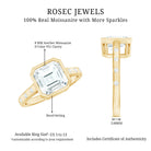 Show your special lady just how much she means to you with our gorgeous Moissanite Engagement Ring on her big day. Its elegant yet simple design beautifully showcases the center gemstone. This classic Asscher Engagement Ring features D-VS1 quality moissanites, ensuring the fire and brilliance that represent love and commitment. At the heart of it is an 8 MM asscher cut Moissanite securely set in bezel setting. The stunning round cut side stones arranged in a spaced style create a bold and eye-catching look, reflecting your unique style and personality. This Solitaire Engagement Ring has a timeless, brilliant geometric shape with sharp edges that draws all the attention. It perfectly blends classic beauty with a modern twist, providing an elegant appearance that radiates stunning brilliance. This Moissanite Solitaire Ring comes in various sizes, guaranteeing a perfect fit that feels tailor-made just for you. Every detail of this 3 Carat Moissanite Ring for Women reflects precision, passion, and a hint of magic that only true craftsmanship can achieve. Let your fingers tell your story and let your love shine with a brilliance as unique as your connection.