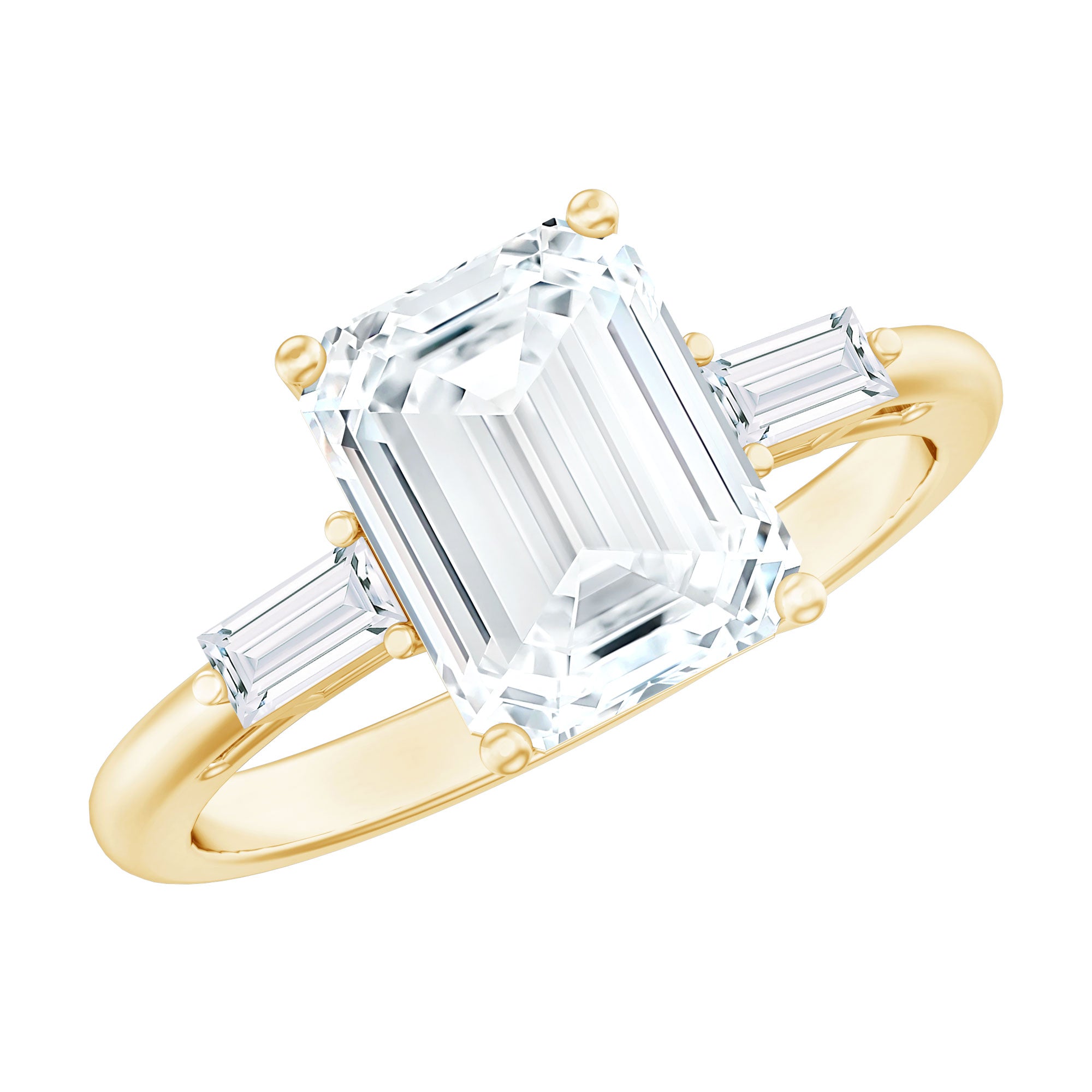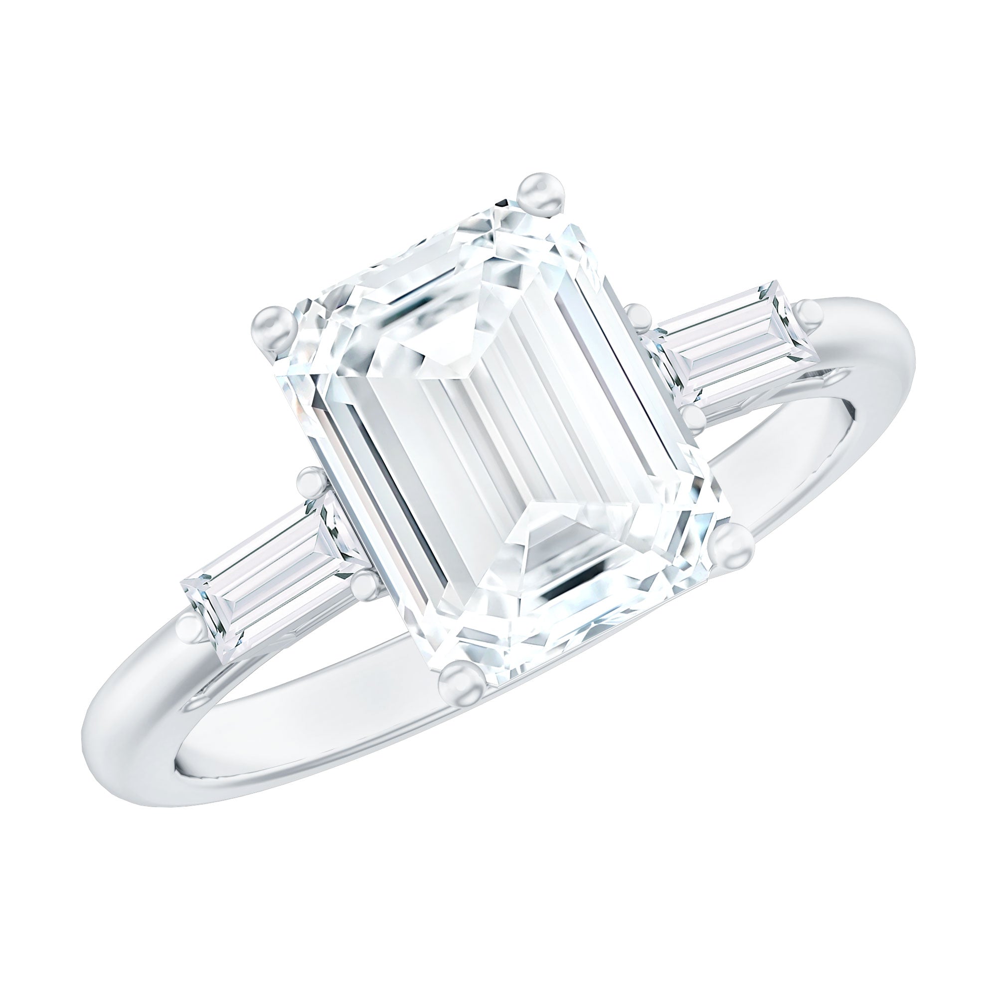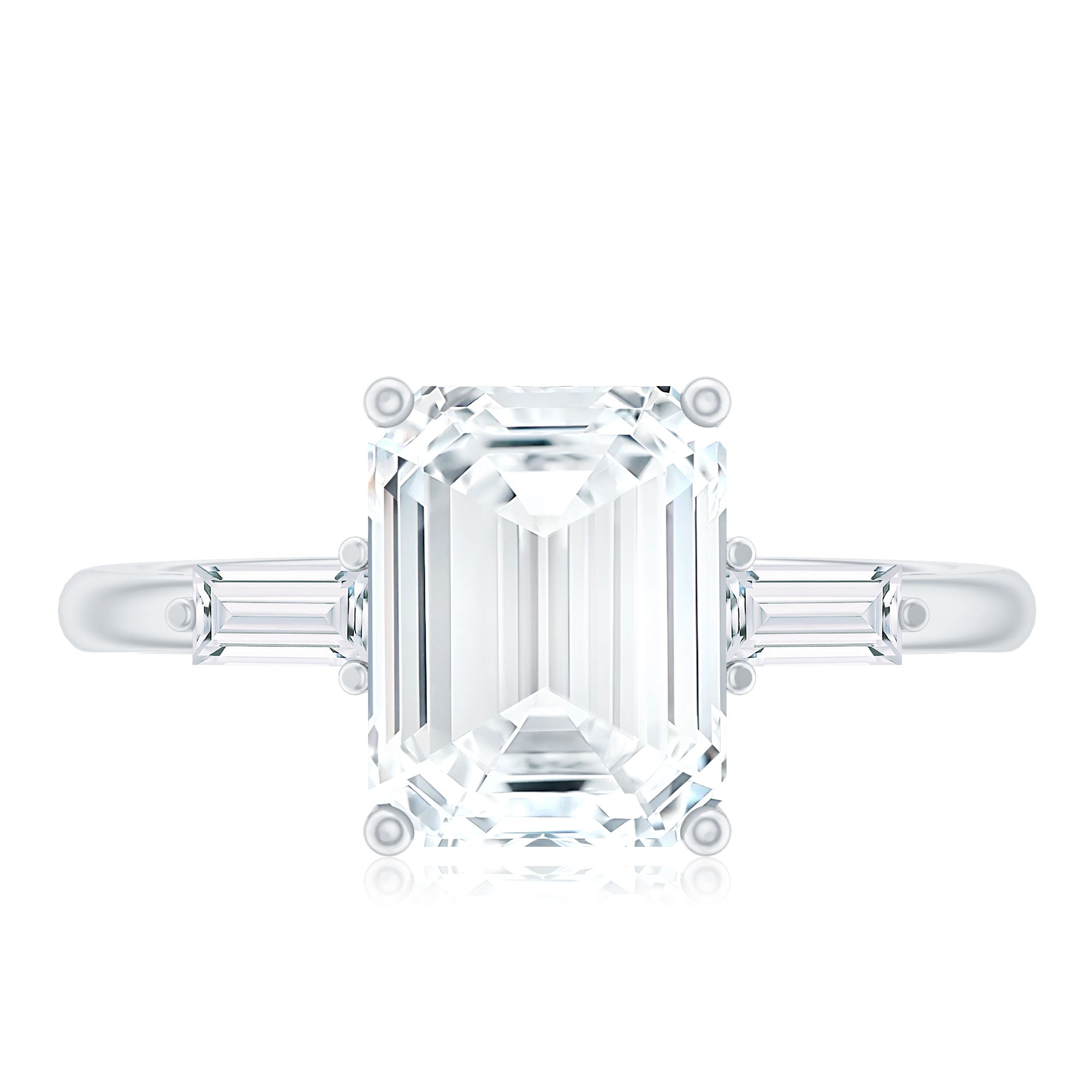 Solitaire Moissanite Emerald Cut Engagement Ring with Certificate
