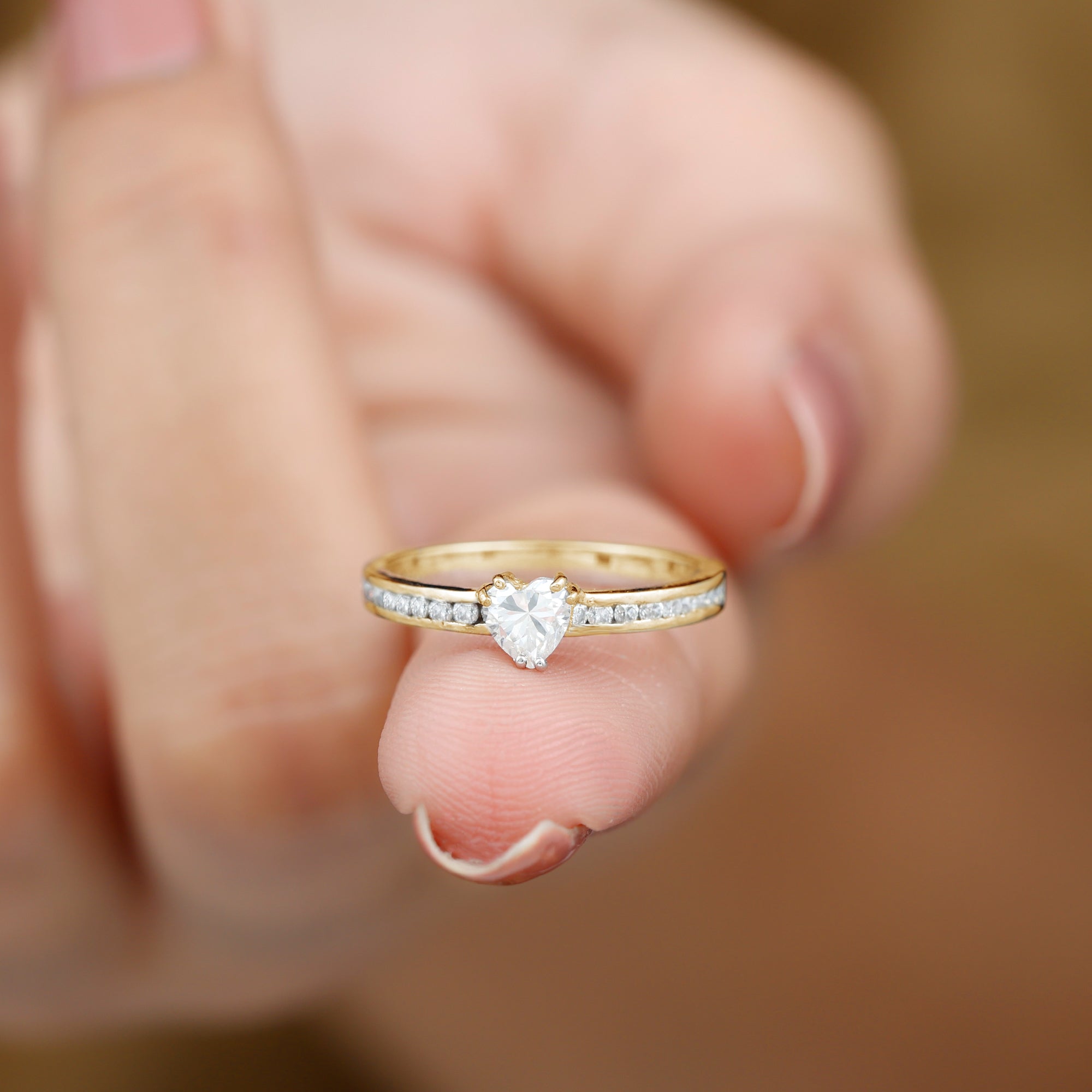 Solitaire Moissanite Heart Promise Ring with Side Stones