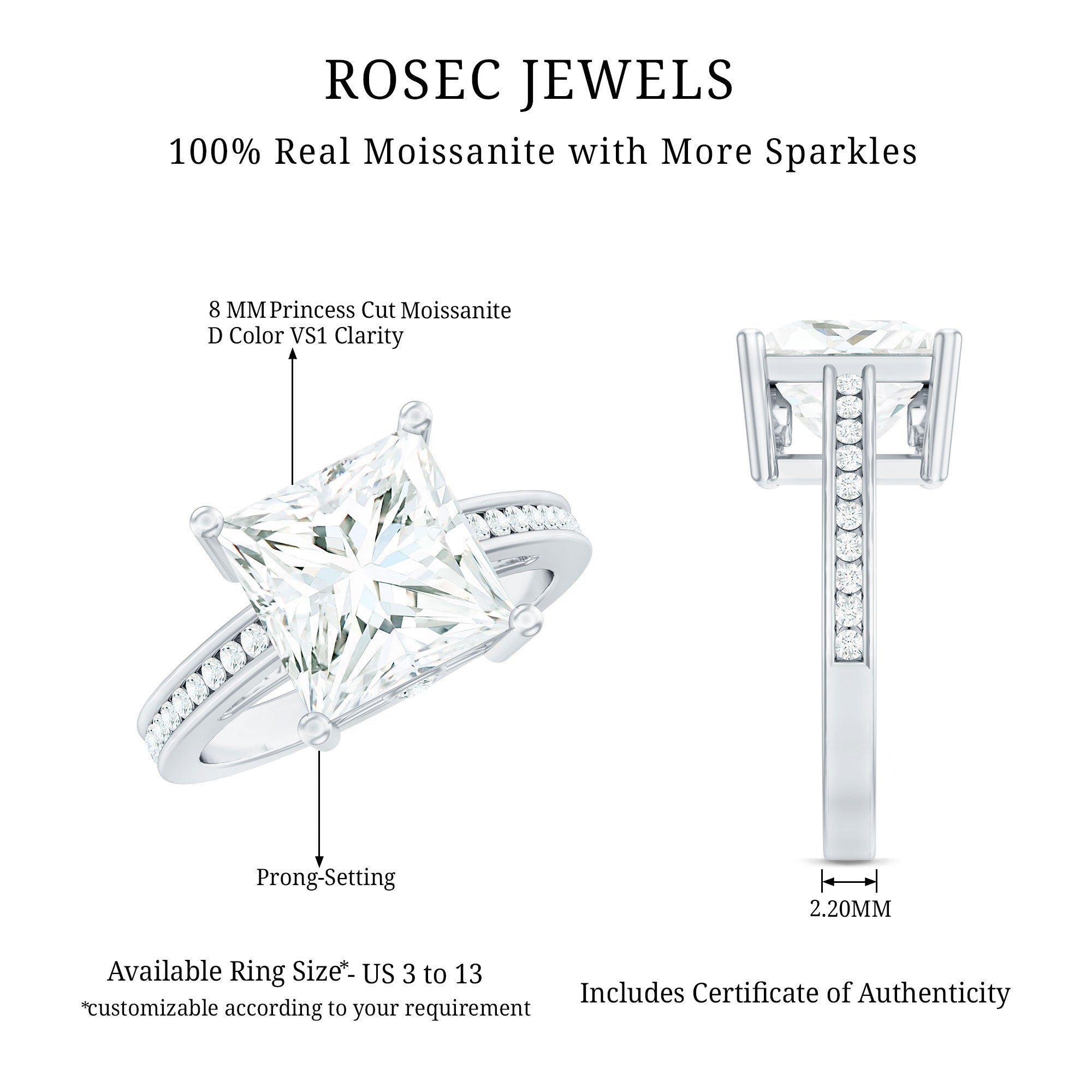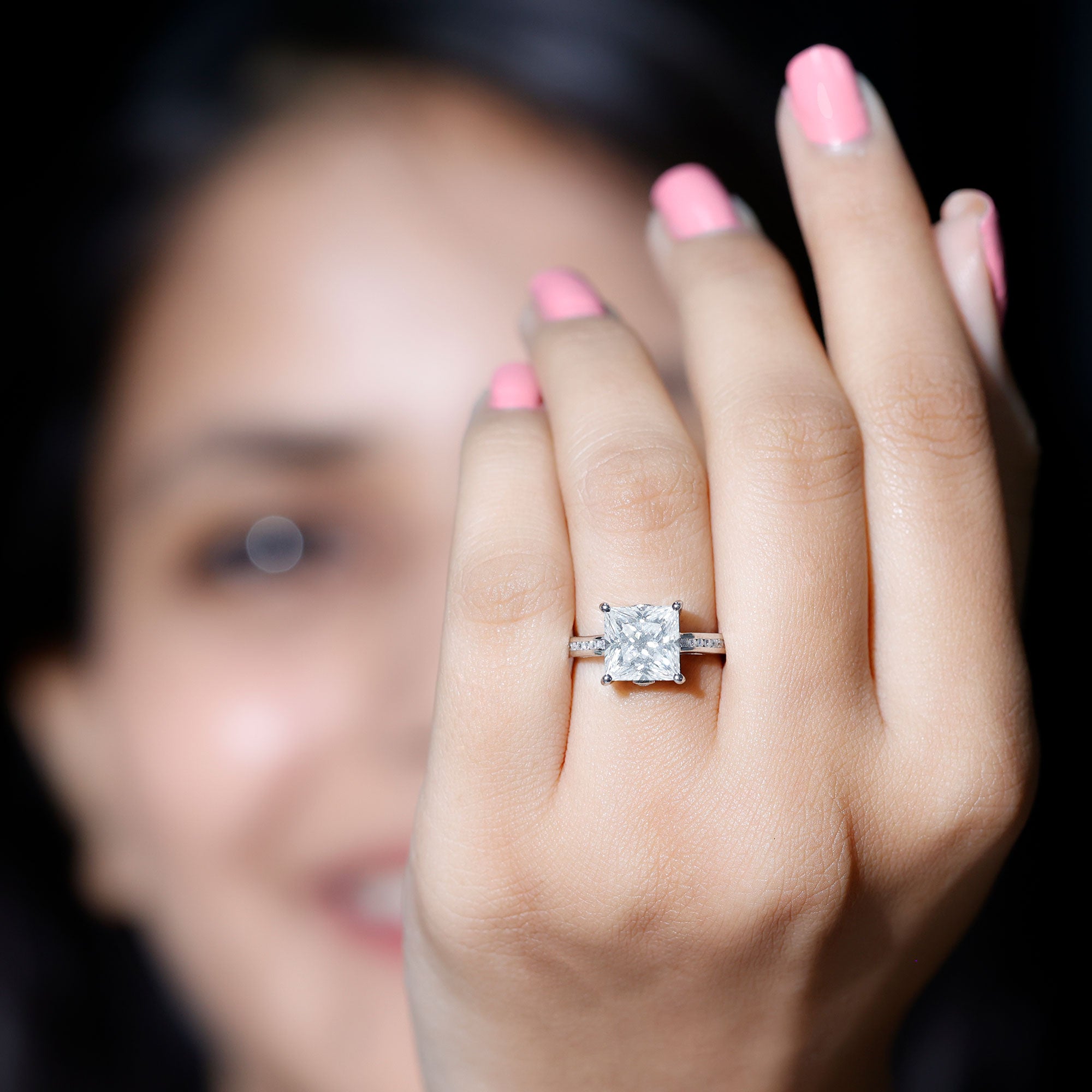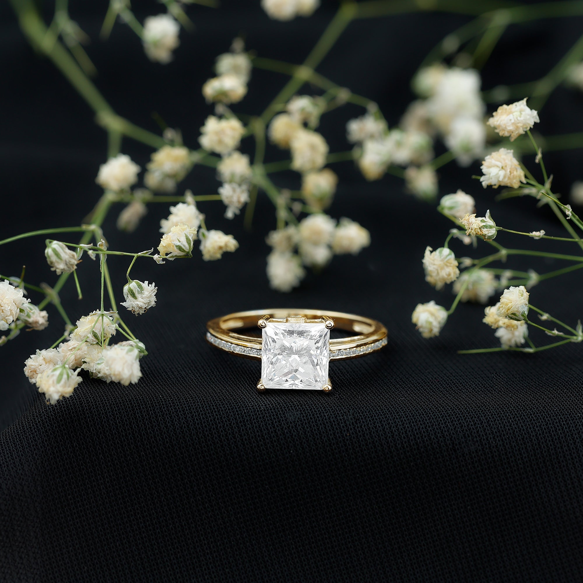 Solitaire Moissanite Princess Cut Engagement Ring with Side Stones