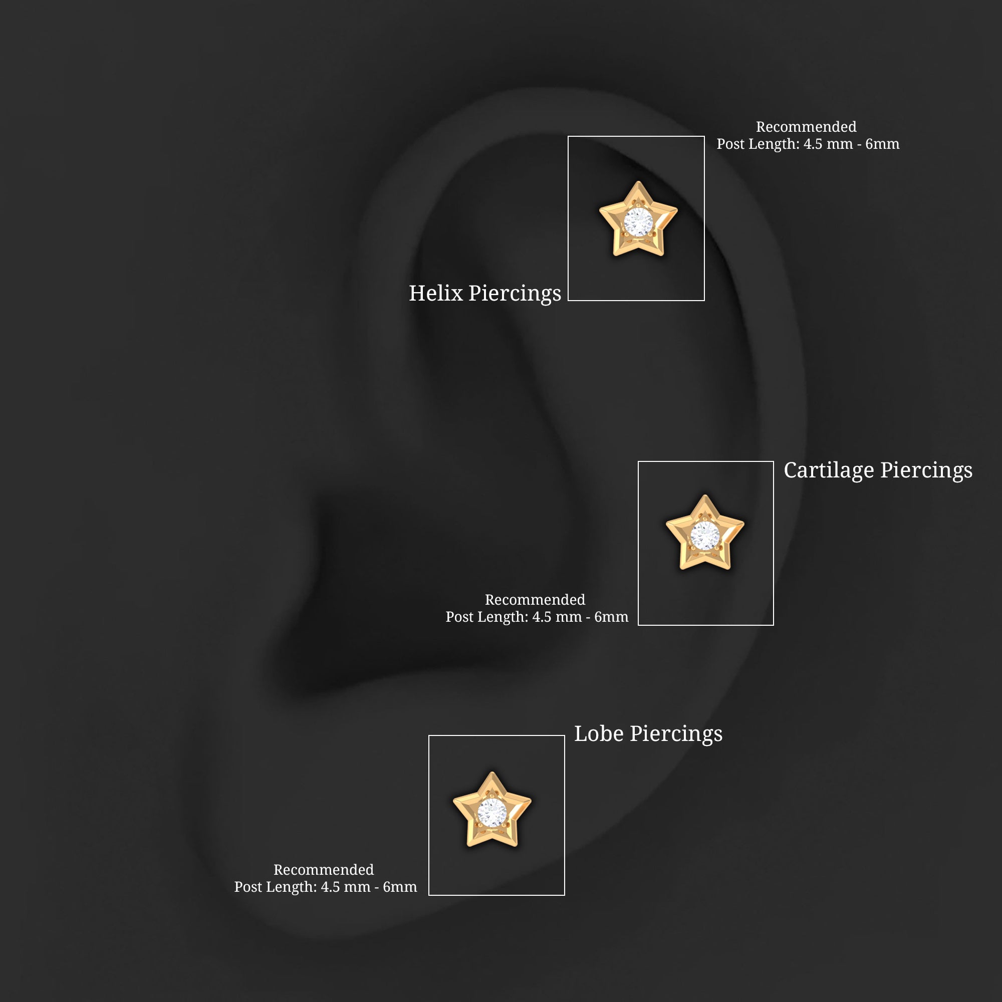 Adorned with a Round Cut Moissanite set at the center of an adorable Star design, this Moissanite Earring is a beautiful addition to your jewelry collection. Crafted in Gold for an opulent look, this tiny yet enchanting earring is a unique and charming way to show off your style around town. Perfect for a variety of piercings, including Rook, Helix, Conch, Tragus, Cartilage, or Lobe, this Moissanite Earring is sure to impress. Surprise your special someone with this Star Earring as a thoughtful Christmas gift that she will absolutely love.