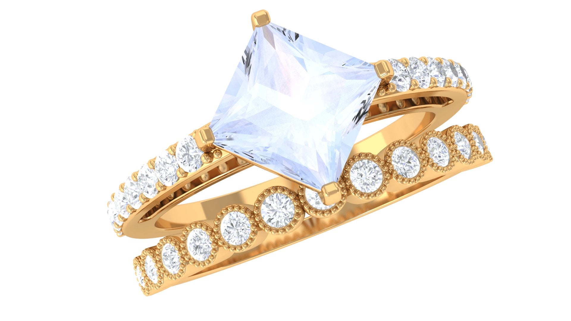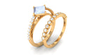 Flaunt our Solitaire Ring Set with your favorite attire to be in the spotlight of any event. Embellished with Princess Cut Moonstone while more Round Diamonds studded on the shank. The Unique Ring Set is crafted in Solid Metal for a luxe appeal and will complement your attires effortlessly. Wear our Moonstone Ring Set to create a gorgeous look.