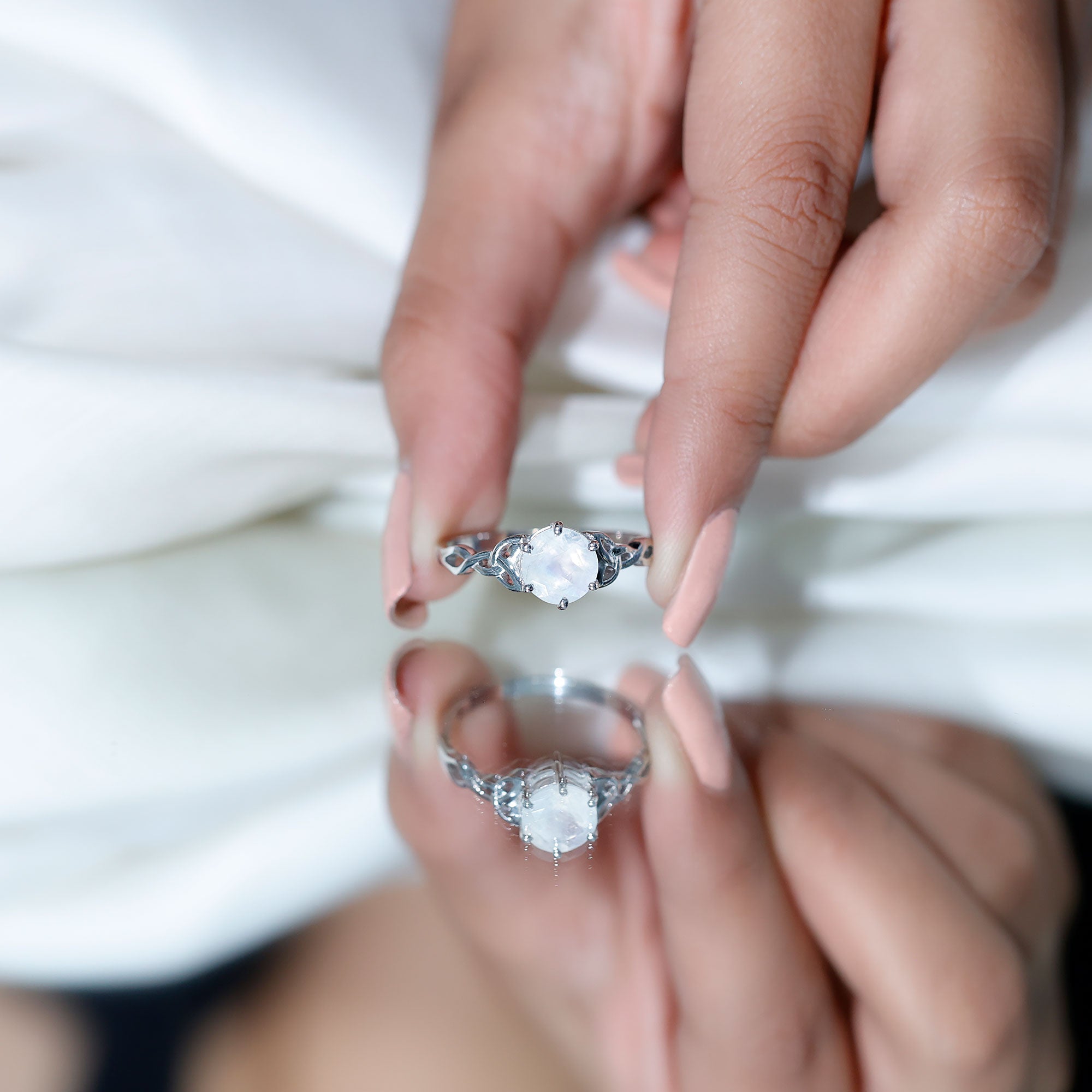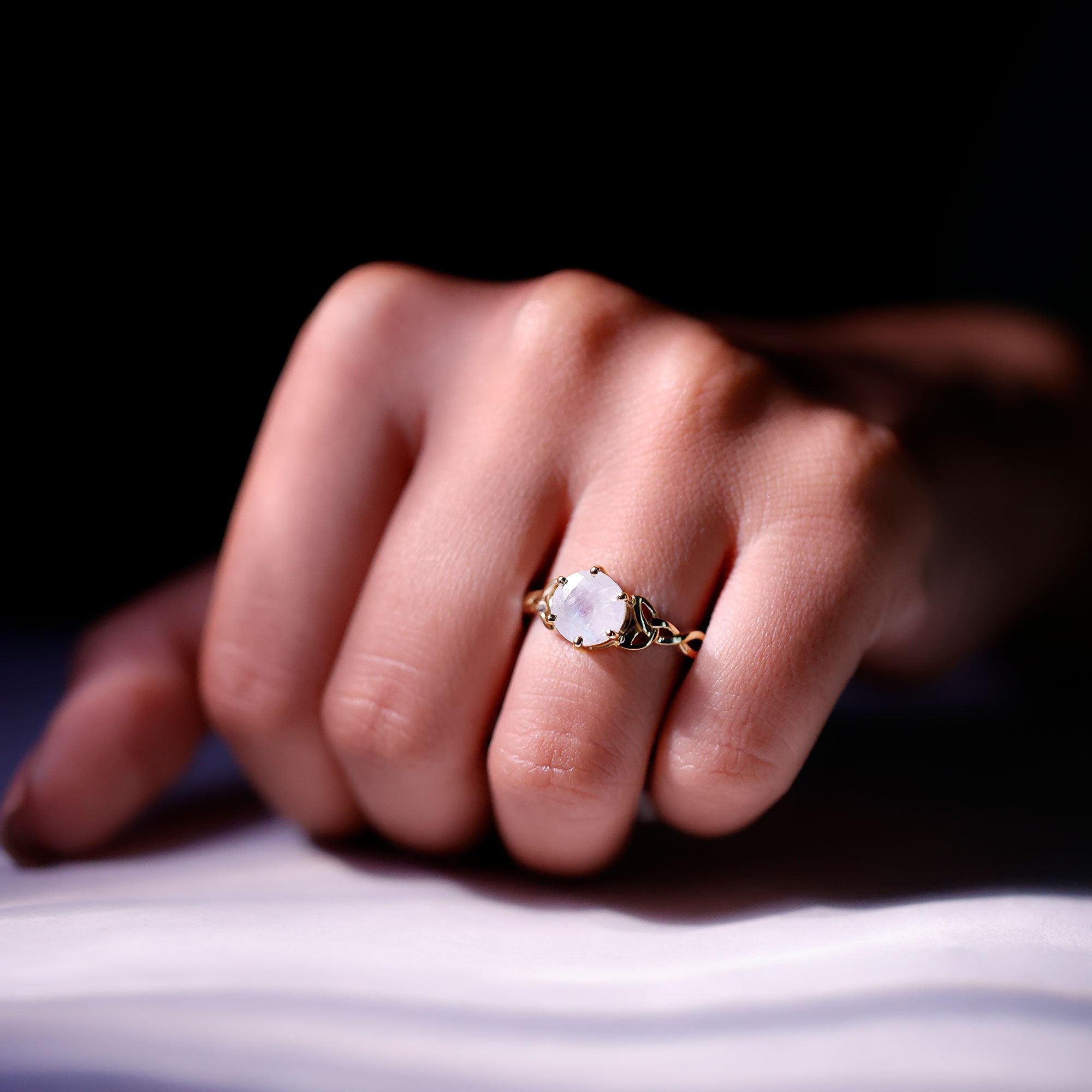 Solitaire Moonstone Celtic Engagement Ring in 6 Prong Setting
