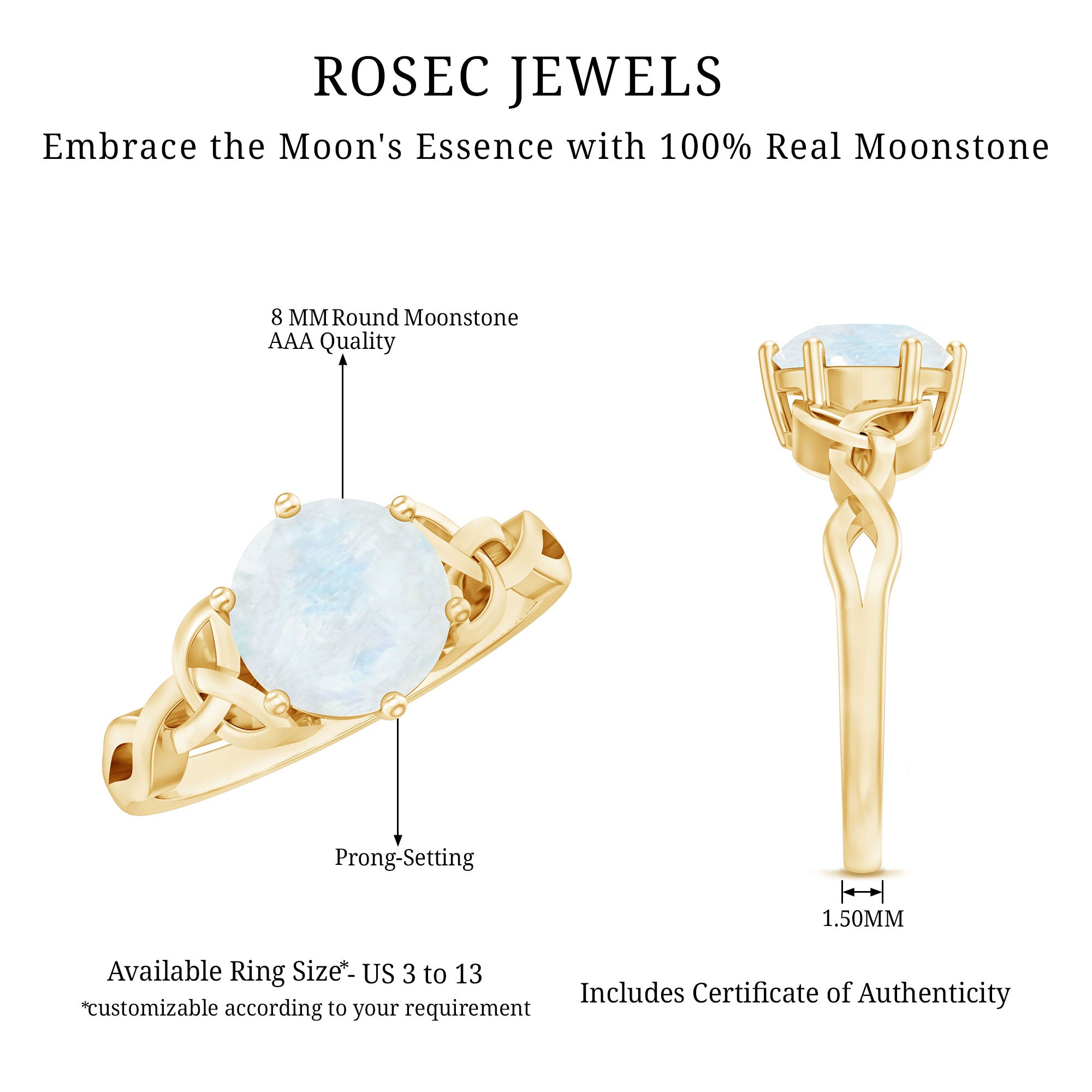 An Amazing and Stunning Solitaire Engagement Ring is embellished with Round Shape Moonstone as Solitaire in 6 Prong Setting. This Celtic Engagement Ring is available in various metal options.