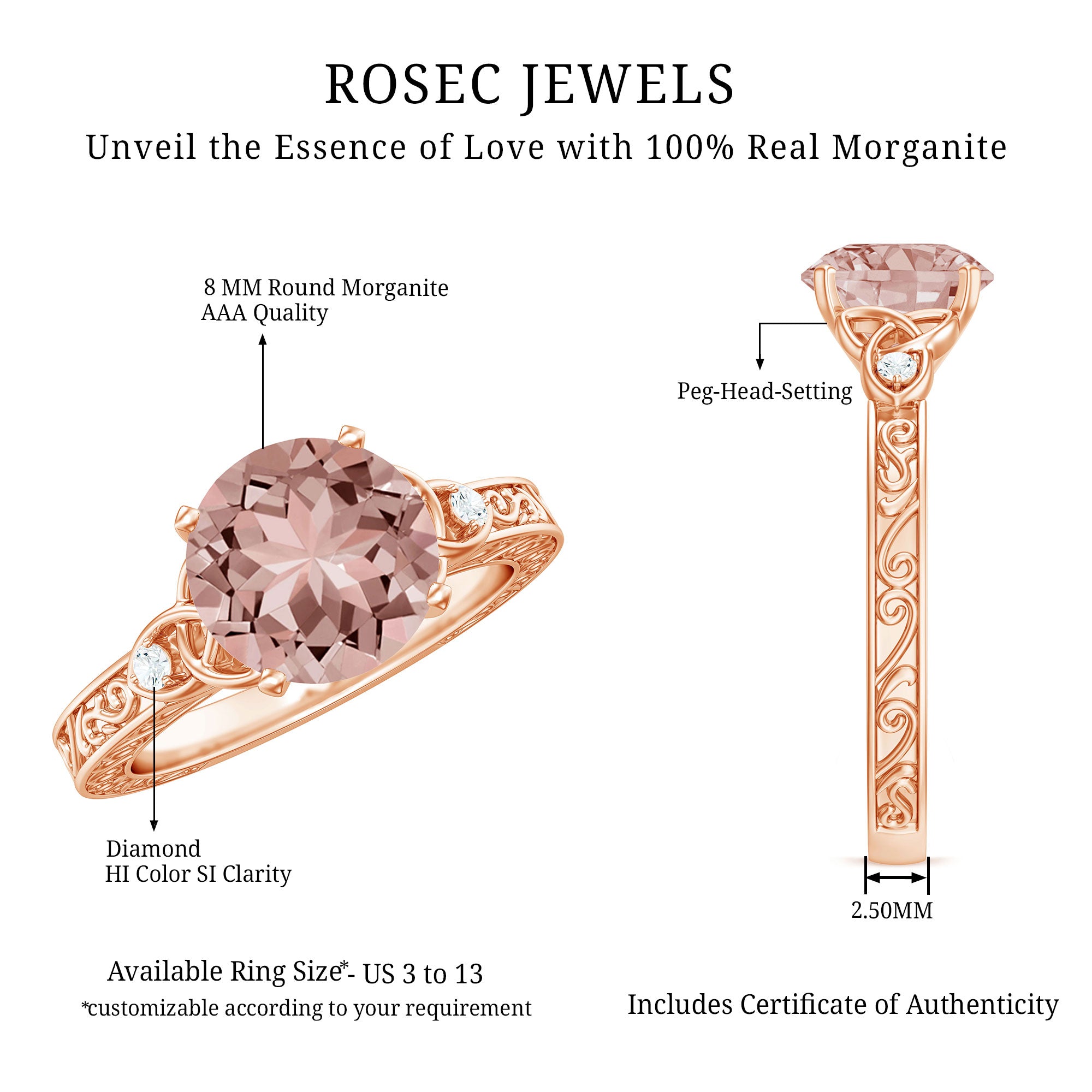 Solitaire Morganite Celtic Knot Ring with Diamond