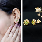Elevate your style with the brilliance of Peridot Solitaire Stud Earrings. The Prong Set Peridot Solitaire and Swirl design adds a touch of elegance and charm, bringing sparkle to even the dullest days. The perfect gift to make her feel truly special and loved.