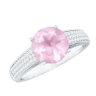 A Wonderful and Lovely Engagement Ring has been embellished with Round Shape Rose Quartz set as a solitaire in a 4 prong setting and Round Shape Diamond as Hidden and Side Stone Style. This Side Stone Engagement Ring is available in various metal options.