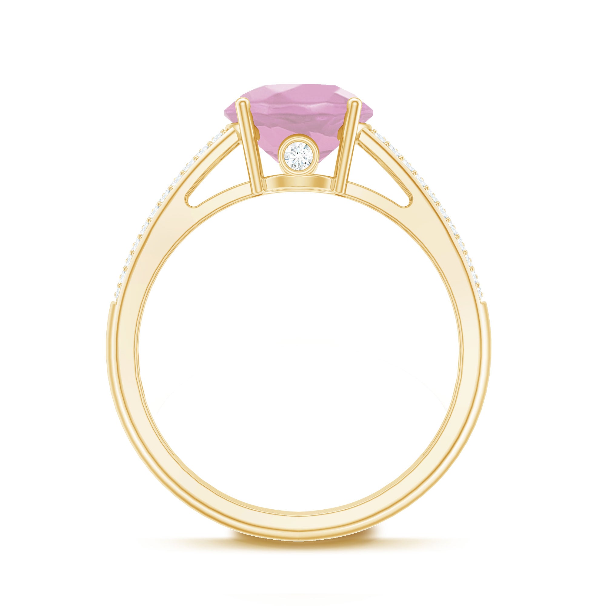 Solitaire Rose Quartz Engagement Ring with Diamond Side Stones