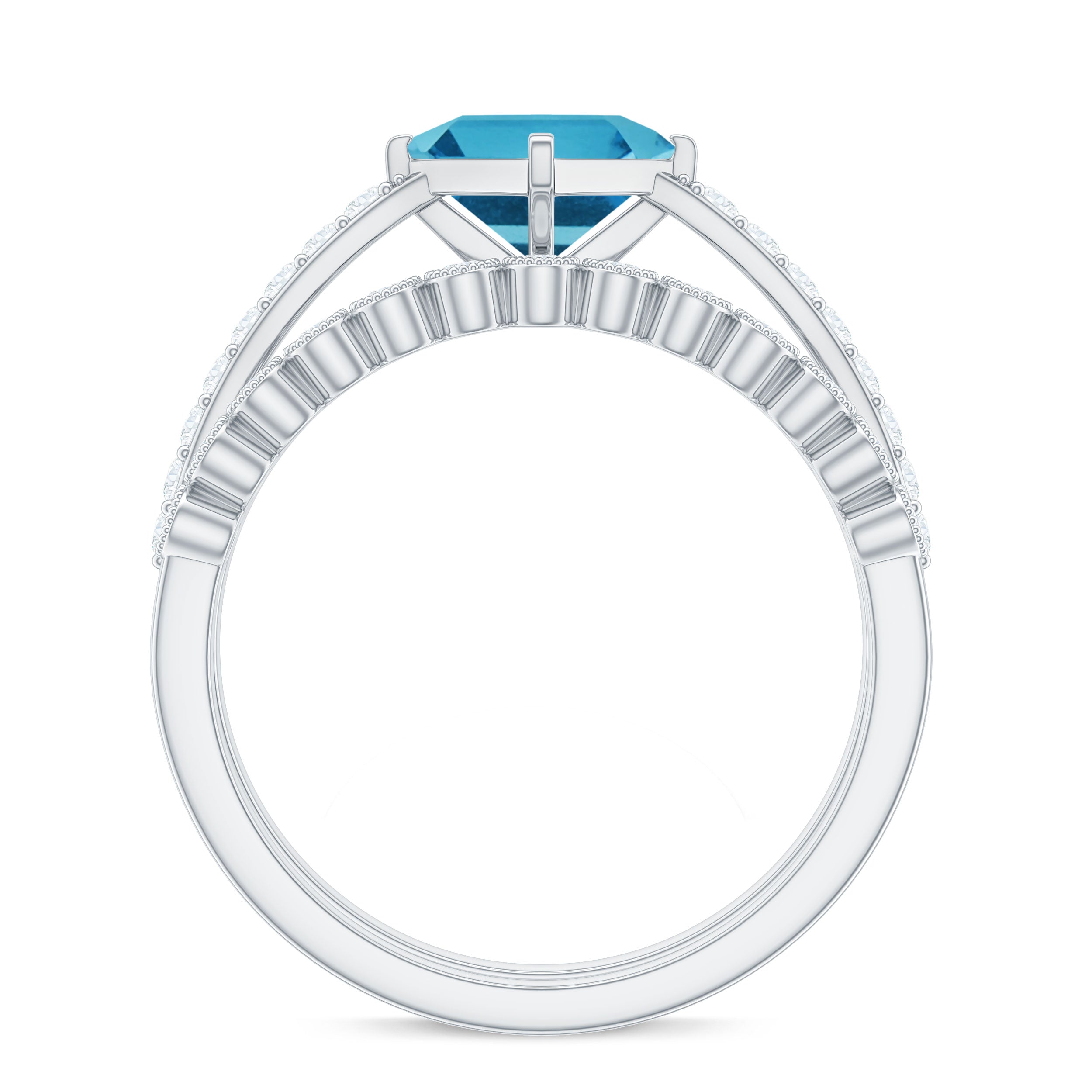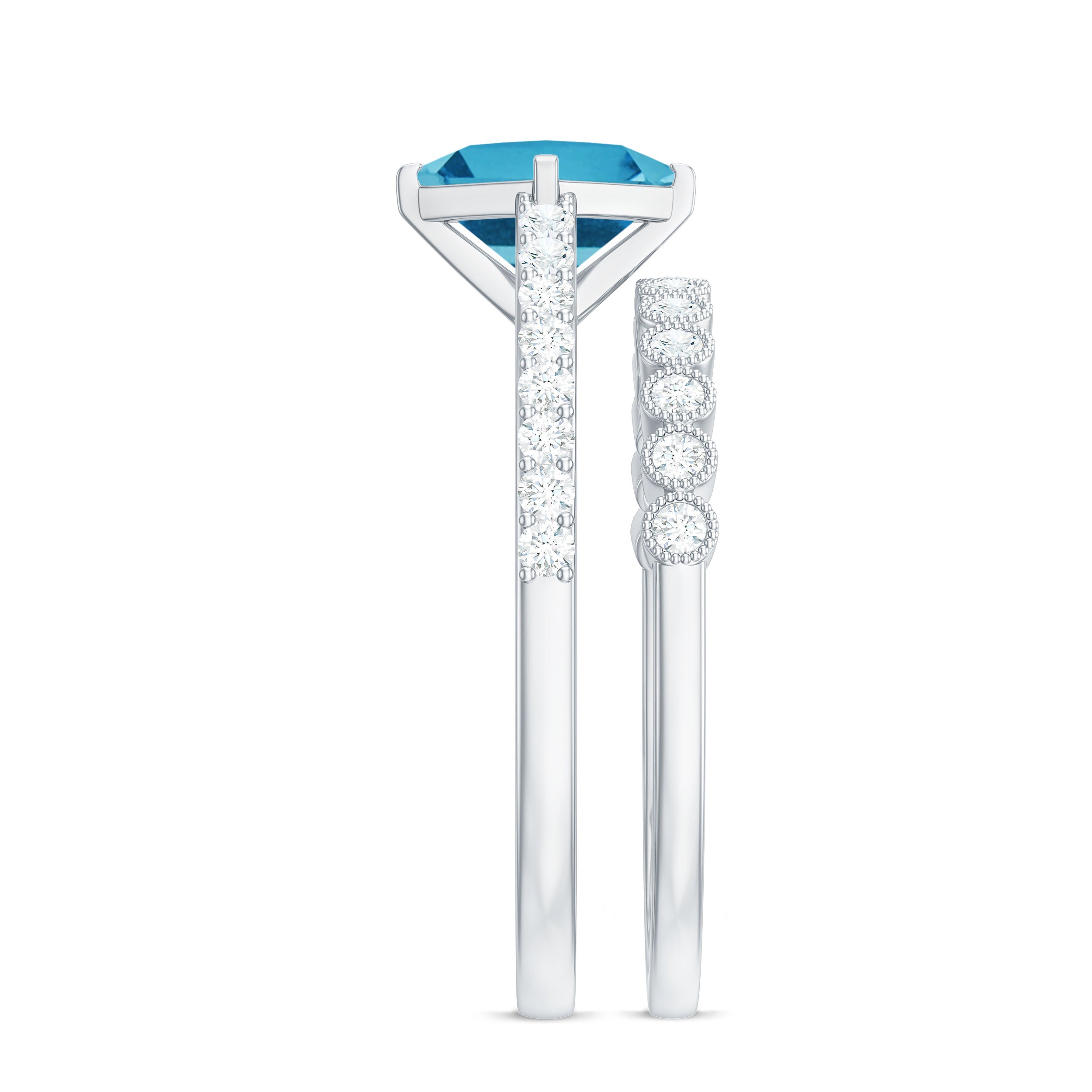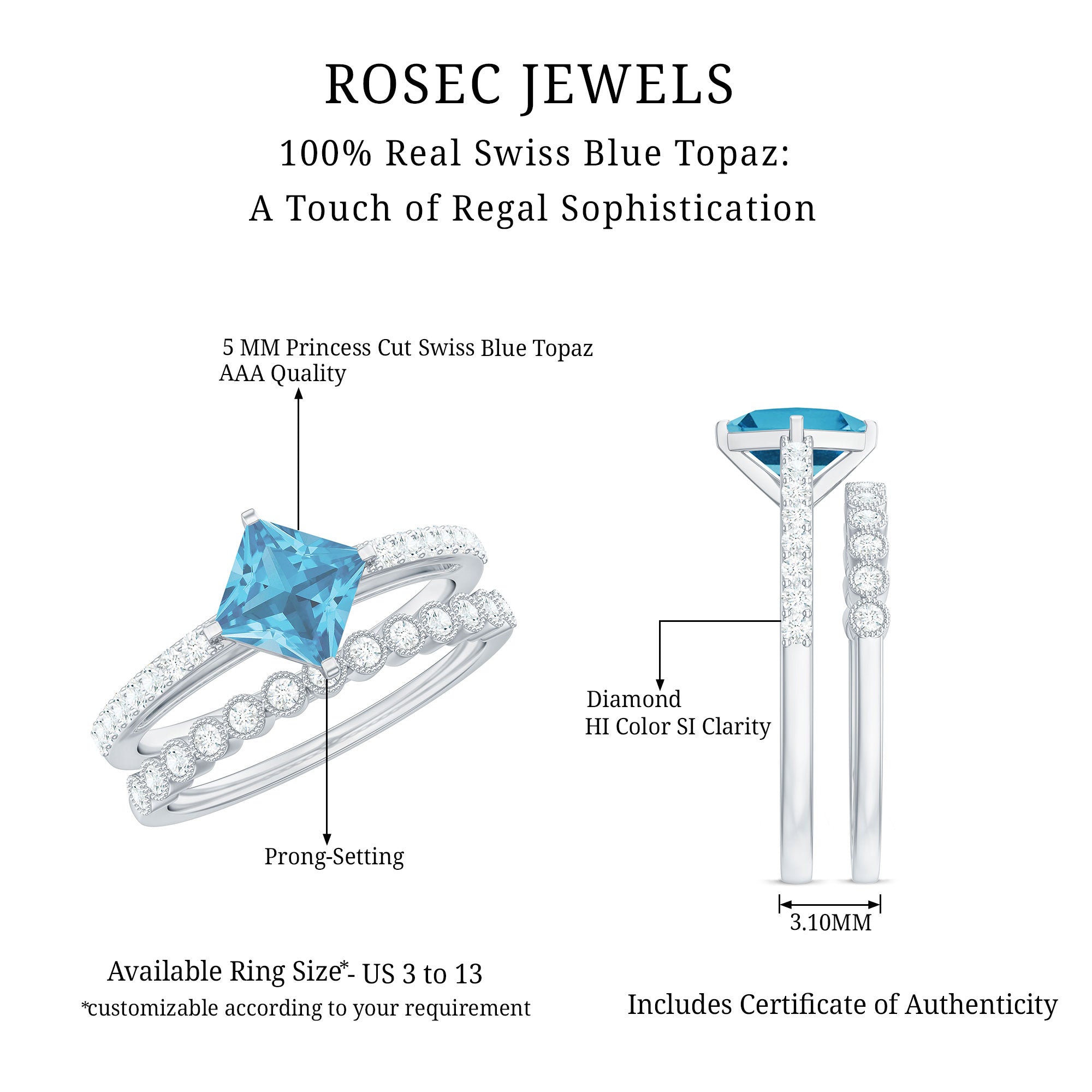 Flaunt our Solitaire Ring Set with your favorite attire to be in the spotlight of any event. Embellished with Princess Cut Swiss Blue Topaz while more Round Diamonds studded on the shank. • The Unique Ring Set is crafted in Solid Metal for a luxe appeal and will complement your attires effortlessly. Wear our Swiss Blue Topaz Ring Set to create a gorgeous look.
